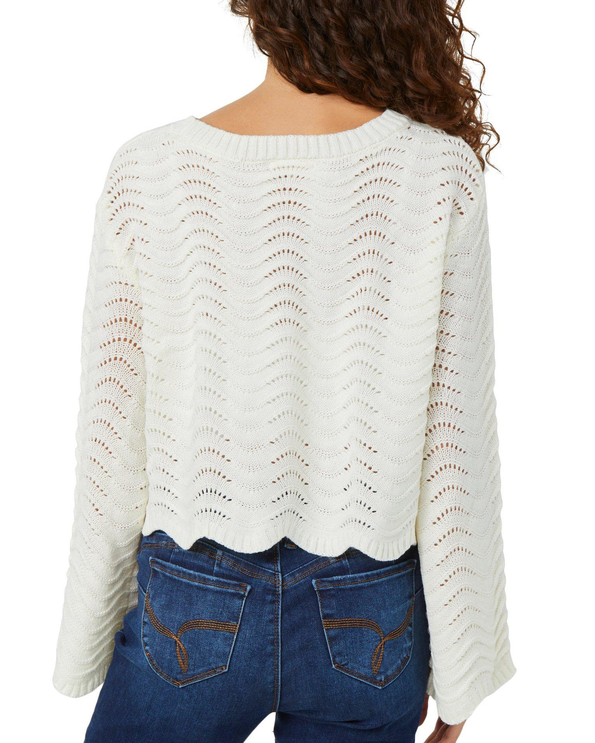 Cozy up in style with the Juniors Pointelle Wave Knit Sweater. Featuring a soft, solid knit body, this sweater is designed with a classic crew neckline and long sleeves, offering a timeless look with a delicate wave texture for added charm. Fabrication 100% acrylic