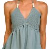 This overall romper is perfect for any outing. It features soft woven fabric, adjustable straps, two side pockets, and frayed hems. Inseam is 2.5 in. fabrication is 100% cotton.