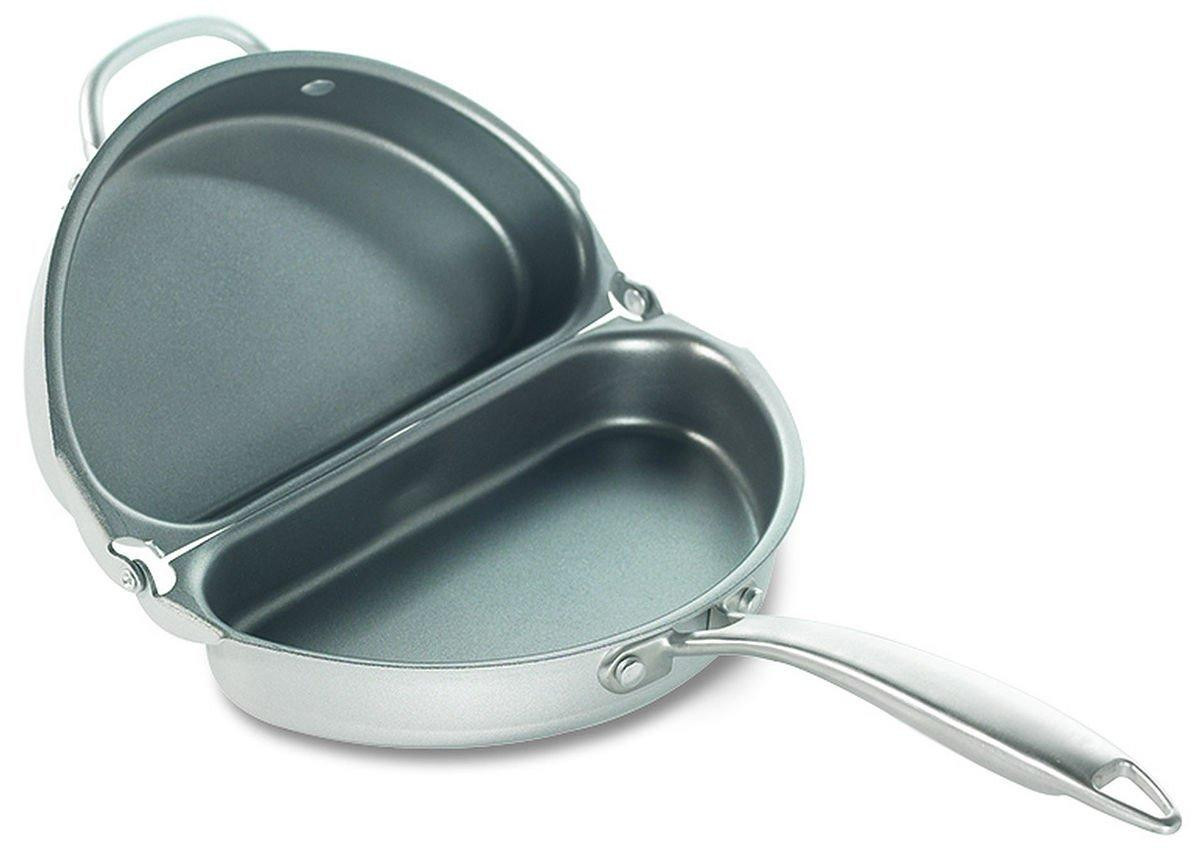 This versatile Nordic Ware Italian Frittata/Omelet Pan is compatible with electric, ceramic or gas stovetops. This aluminized steel pan with stainless steel handle is oven safe to 400 degrees & features a PFOA-free nonstick interior. 5”L x 8.63”W x 1.38”H.