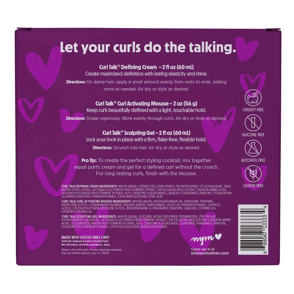 Whether youre traveling, sampling, or staying stocked with back ups for your car or bag, our Curl Talk To-Go Mini Styling Kit is a styling savior with three travel-sized curl enhancing hair products from our most-loved collection: Frizz Control Sculpting Gel, Curl Activating Mousse, Curl Defining Cream.