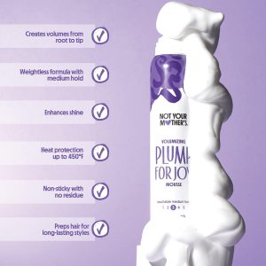 Set your hairs style up for success with Not Your Mothers medium-hold, Volumizing Mousse. As it adds instant body and shine from root to tip, this multi-tasking, weightless formula makes for touchable locks that are never sticky or crunchy while added heat protection means you can get straight to styling. 7 oz.