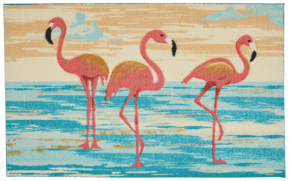 Brighten up your home with the 20×32 Flamingo Accent Rug. Made from 100% polyester, this rug showcases a fun coastal flamingo design that adds a playful touch to any room. Its durable and soft texture ensures both comfort and longevity, making it ideal for high-traffic areas. Perfect for beach-themed decor, this accent rug is a stylish and functional addition to your living space.