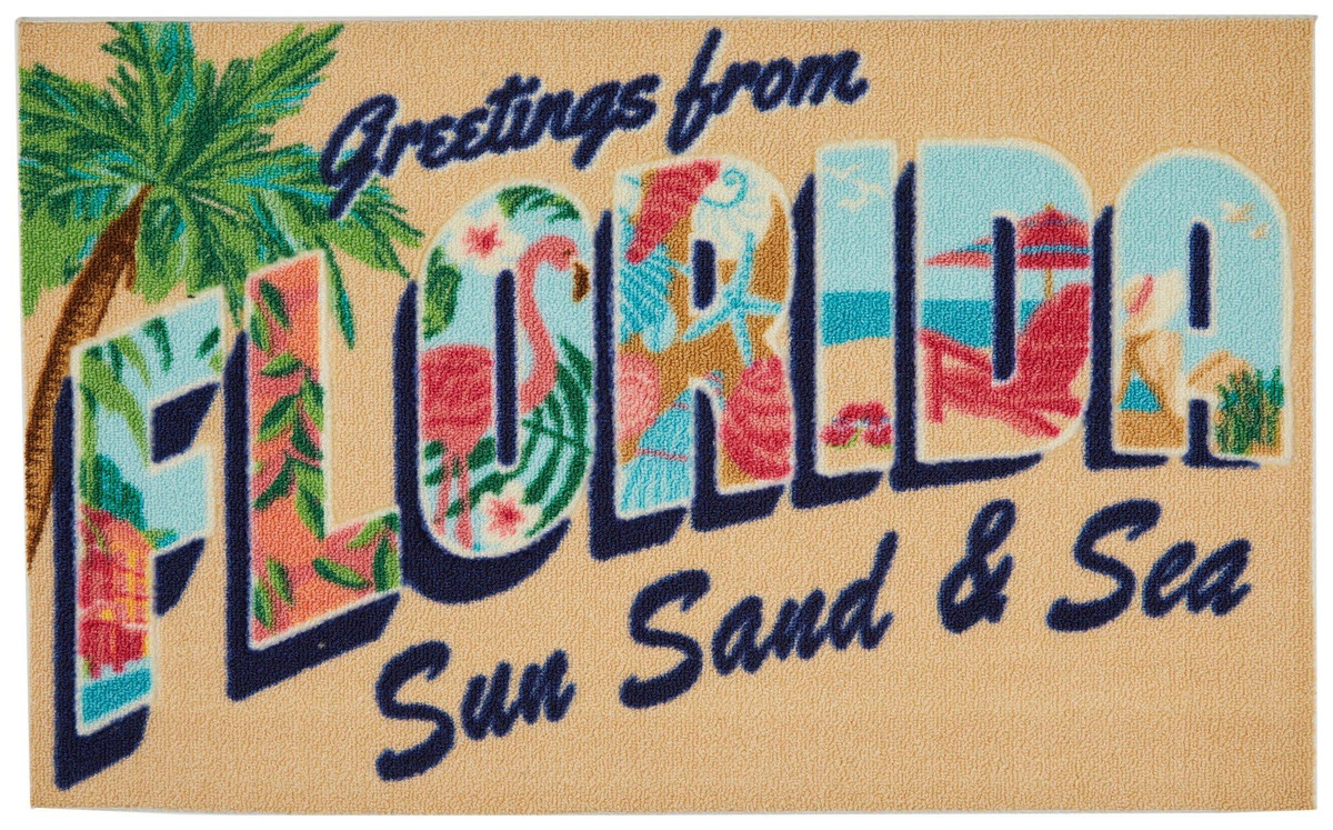Celebrate the Sunshine State with our 20×32 Florida Accent Rug, crafted from 100% polyester for durability and softness. Featuring a fun Florida script and inspired design, this rug adds a lively touch to any space. Perfect for both indoor and outdoor use, its sturdy construction ensures long-lasting color and wear. Practical and stylish, this rug combines functionality with a vibrant aesthetic.