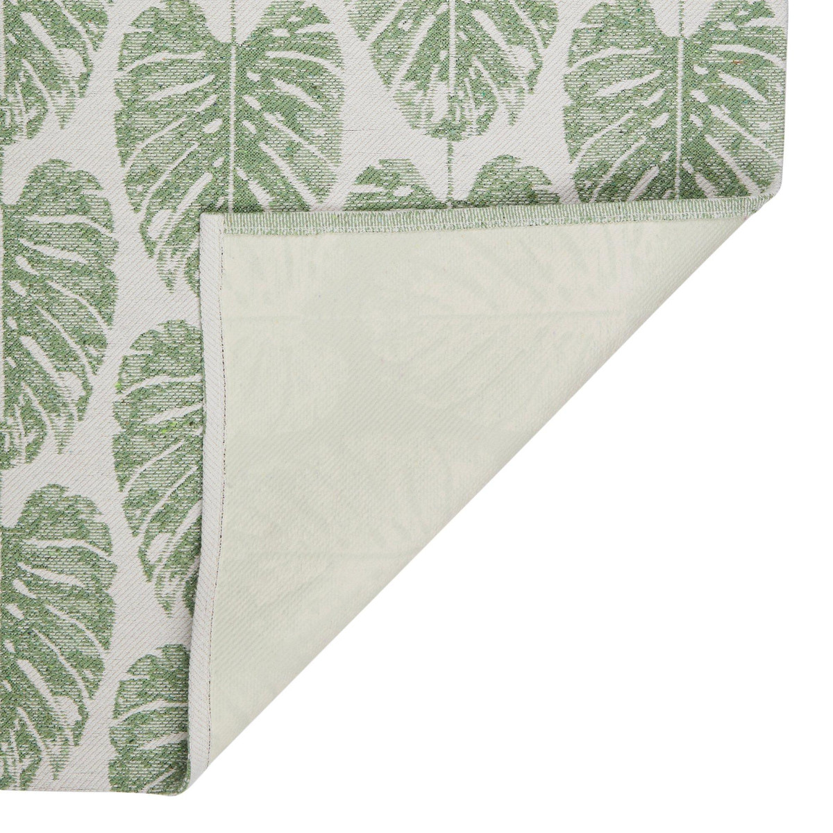 Enhance your living space with the 27×45 Tybee Accent Rug. Crafted from a blend of polyester, cotton, and rayon, this rug features a charming leaf print that brings a touch of nature indoors or outdoors. Its durable construction ensures it withstands various weather conditions, while the soft texture provides comfort underfoot.