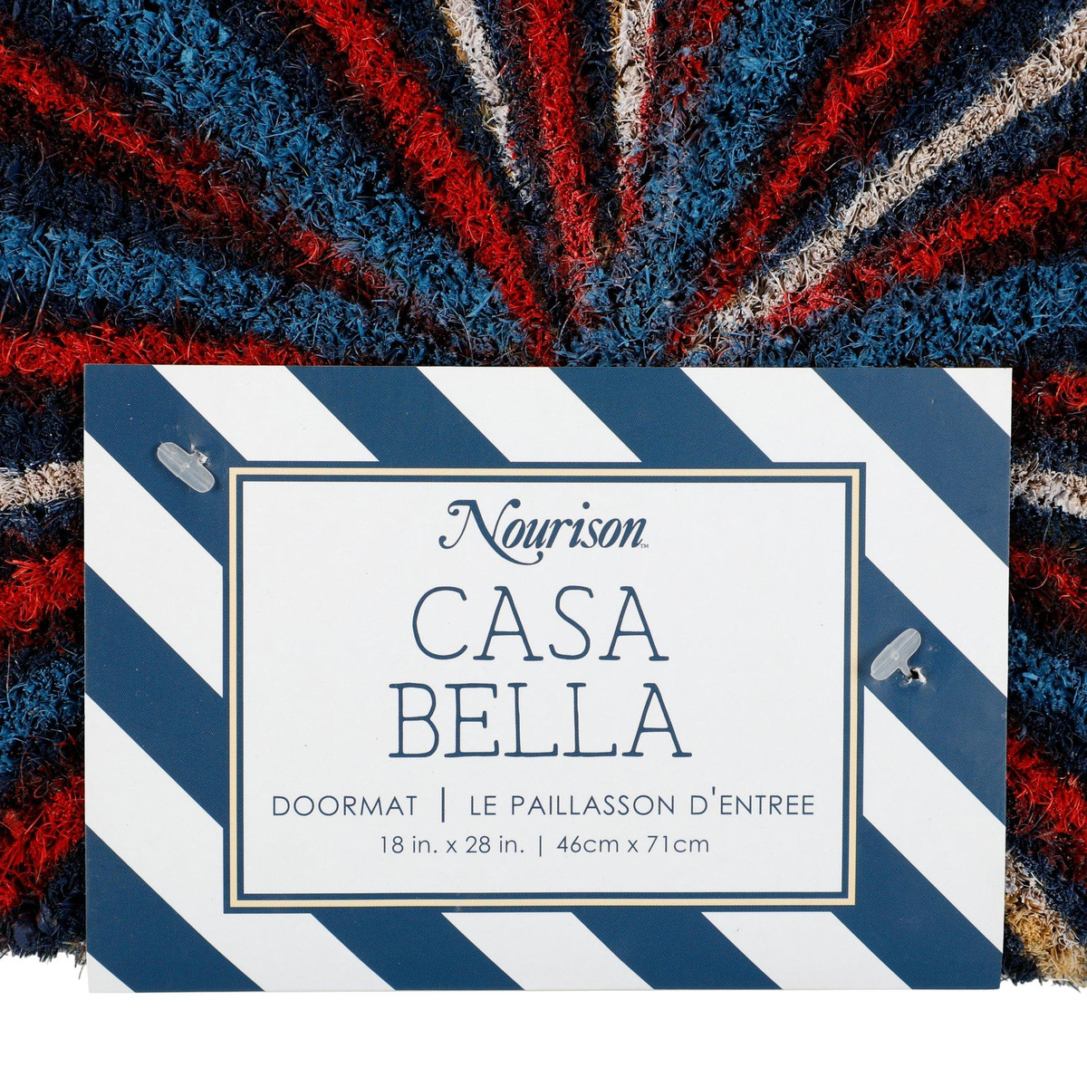 Welcome guests with a touch of patriotic charm with this Americana doormat featuring fireworks and stars in classic red, white, and blue colors. Durable and stylish, its perfect for adding a festive, all-American flair to your entrywayrain or shine. Easy to clean, just shake, sweep, vacuum, or hose off. Functional, decorative, and made for sunny days ahead! Fabrication is 100% Coir w/ 100% Vinyl backing. Measures approximately 28 in x 18 in.