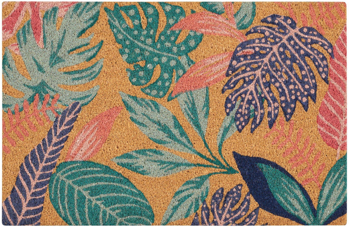 This doormat, featuring a rubber backing and coastal-inspired palm fronds in a colorful design, is the perfect addition to your homes doorstep! Measures 18 x 28 in.