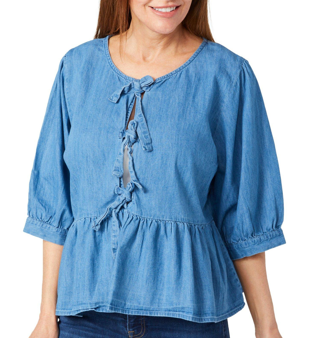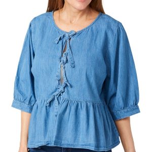 Introducing the 3/4 Sleeve Tie Front Denim Jacket, a stylish twist on a classic favorite. This jacket features 3/4 sleeves and a chic tie front, adding a touch of modern flair to your wardrobe. Crafted from durable denim, it ensures both comfort and longevity. Perfect for layering over your favorite outfits, this versatile piece pairs effortlessly with jeans, skirts, or dresses for a look that’s both casual and sophisticated.