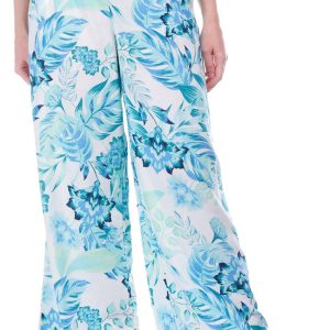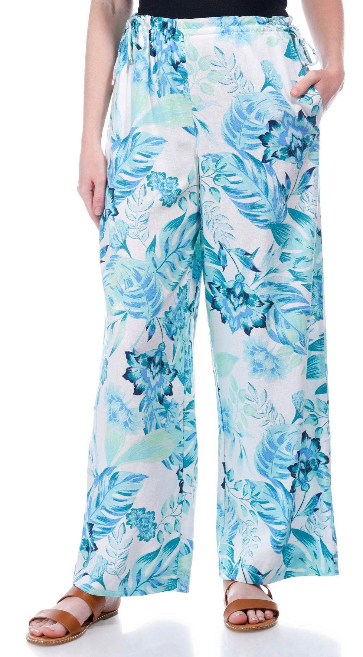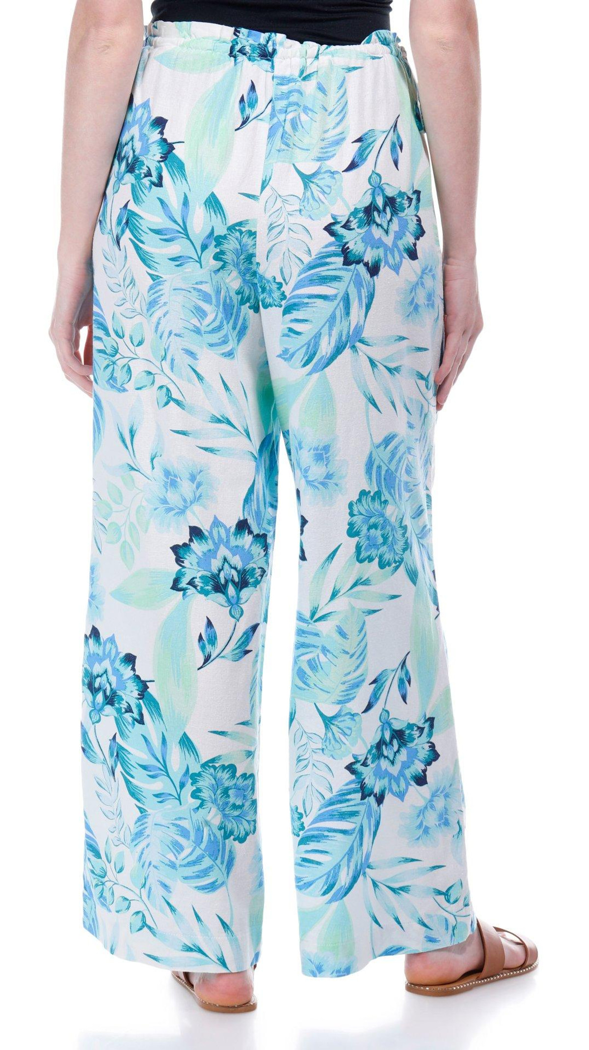 Flow into comfort with the Womens Side Tie Botanical Wide Leg Pants. Featuring a relaxed wide leg fit, elastic waistband with side tie detail, side seam pockets, and a 29-inch inseam, they blend effortless style with everyday ease. Fabrication is 75% viscose and 25% linen.