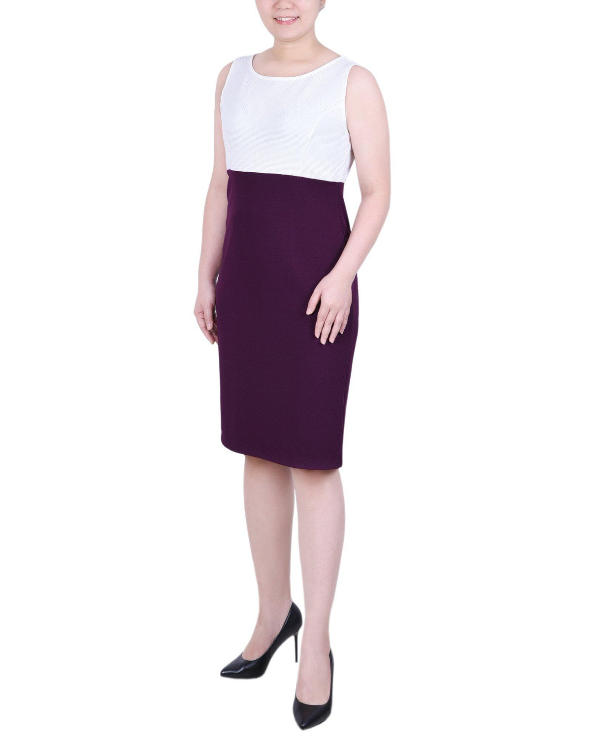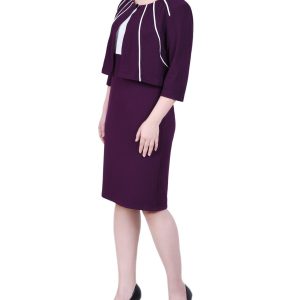With bold contrast piping details, this NY Collection Petite color-blocked dress is layered under a 3/4 sleeve jacket, perfect for any work day.