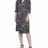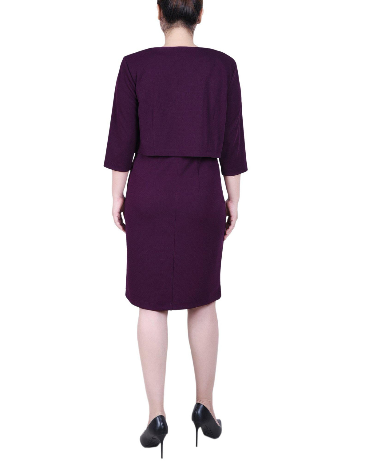 With bold contrast piping details, this NY Collection Petite color-blocked dress is layered under a 3/4 sleeve jacket, perfect for any work day.