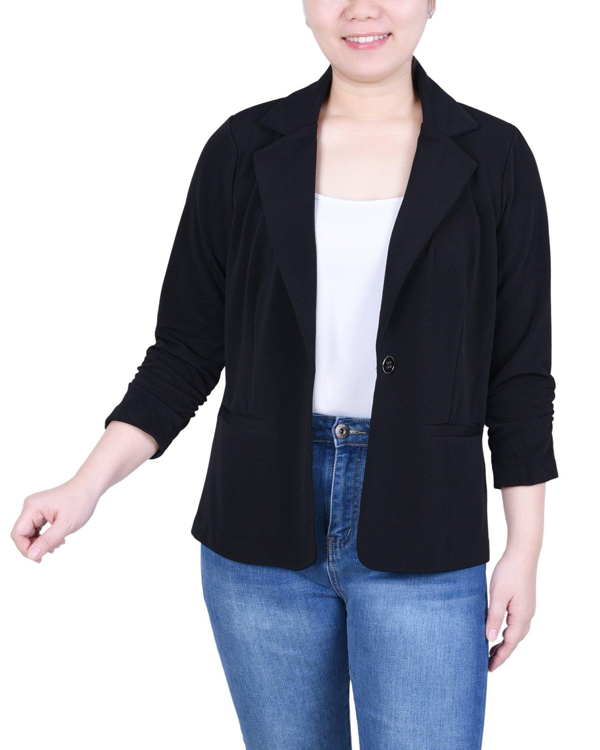NY Collection Petite 3/4 Sleeve Knit Ottoman Jacket