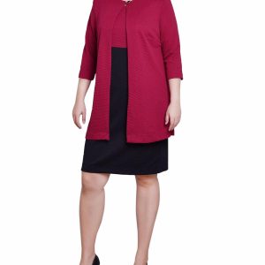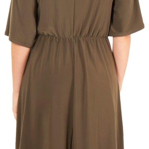 This Roll Tab Sleeve Denim Dress with full button front with a self belt and below the knee length.