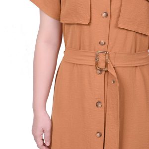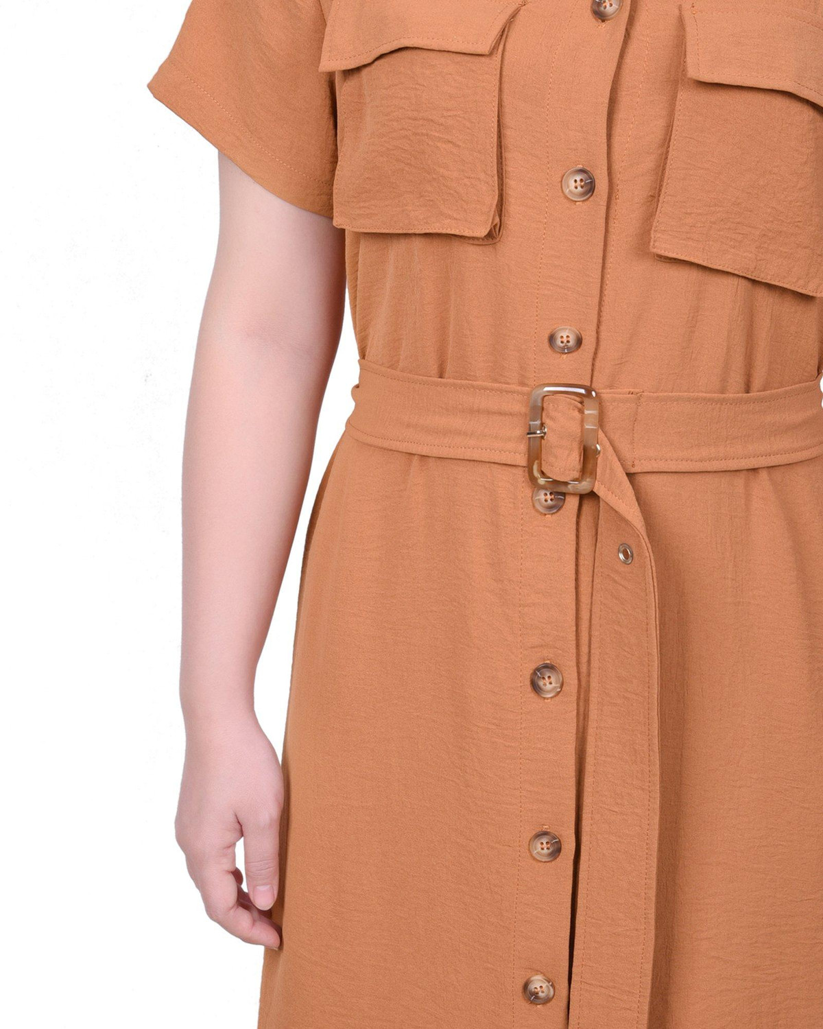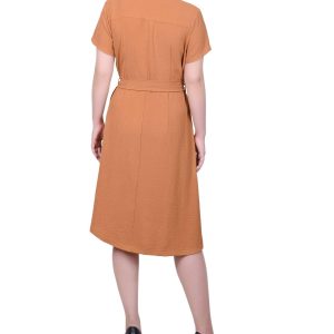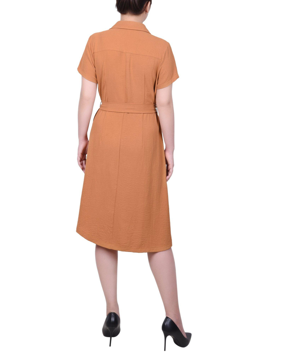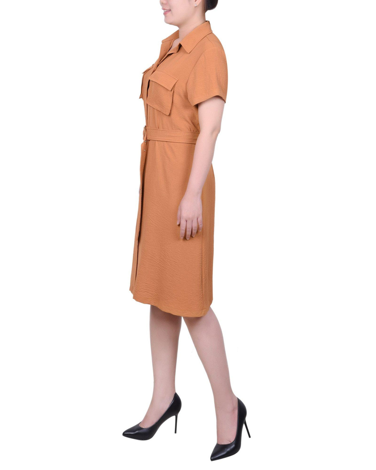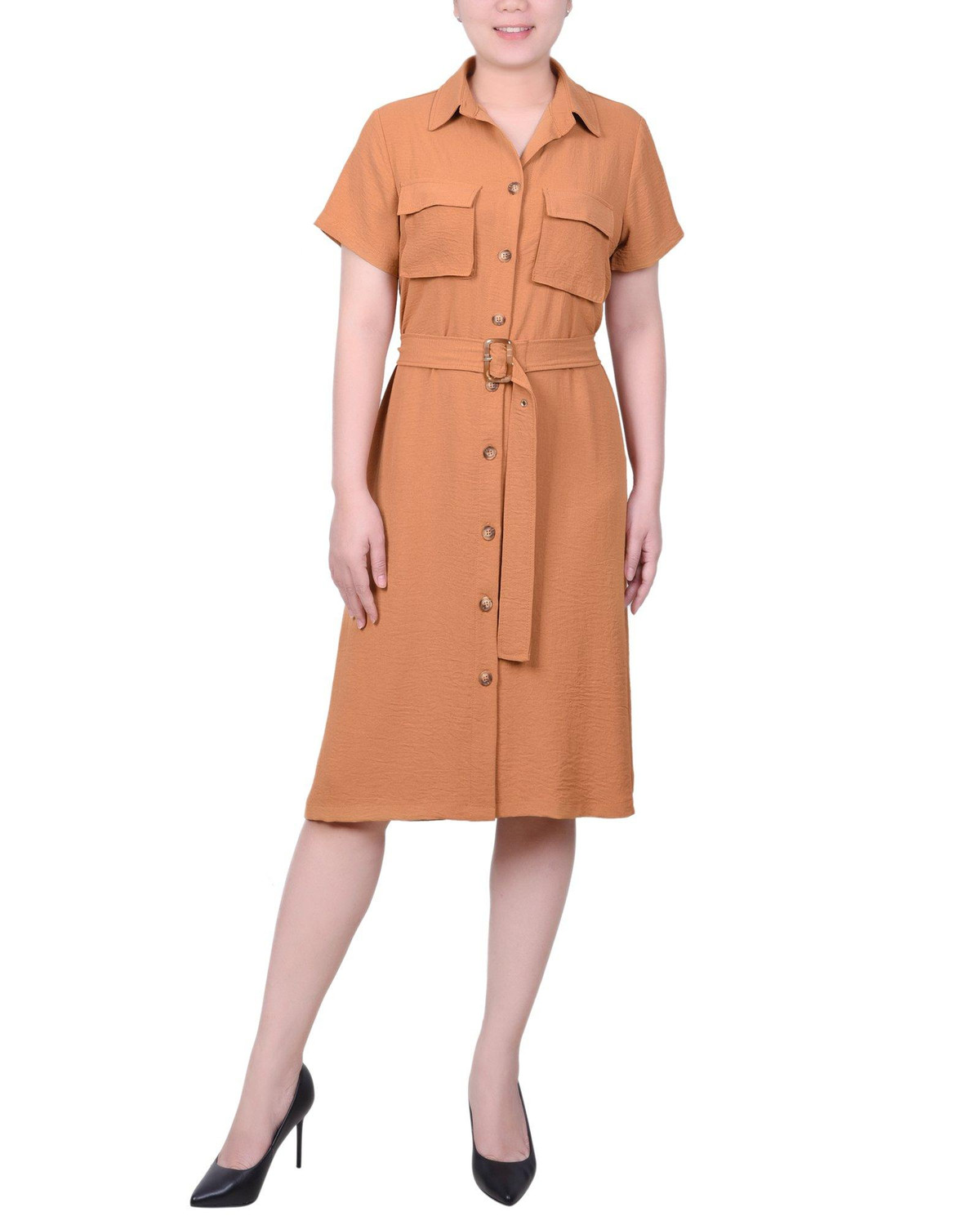 This NY Collection Petite A-line shirtdress is crafted with a belt for a flattering finish. It features short sleeves and timeless style,making it a versatile addition to your wardrobe.