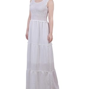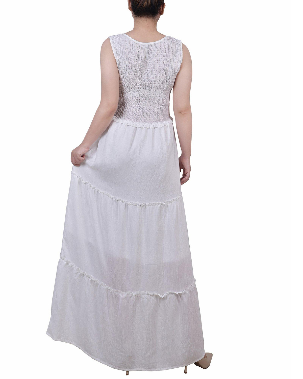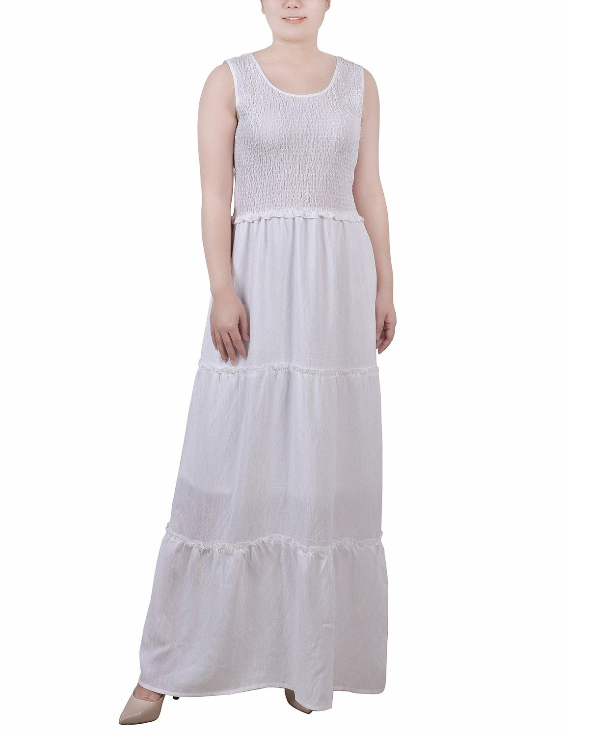 This sleeveless smocked-bodice maxi is great for a casual day at the beach or dress it up with a jacket and shawl for a special night out.