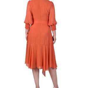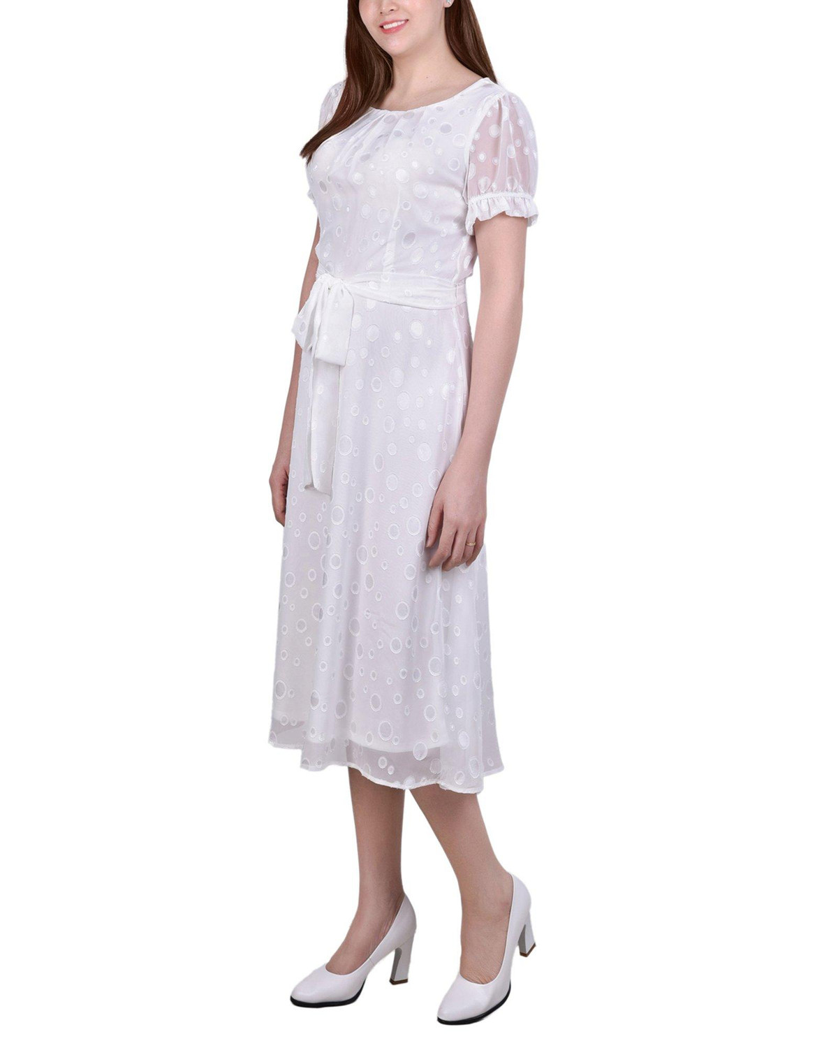 NY Collection Petite Swiss Dot Belted Midi Dress