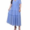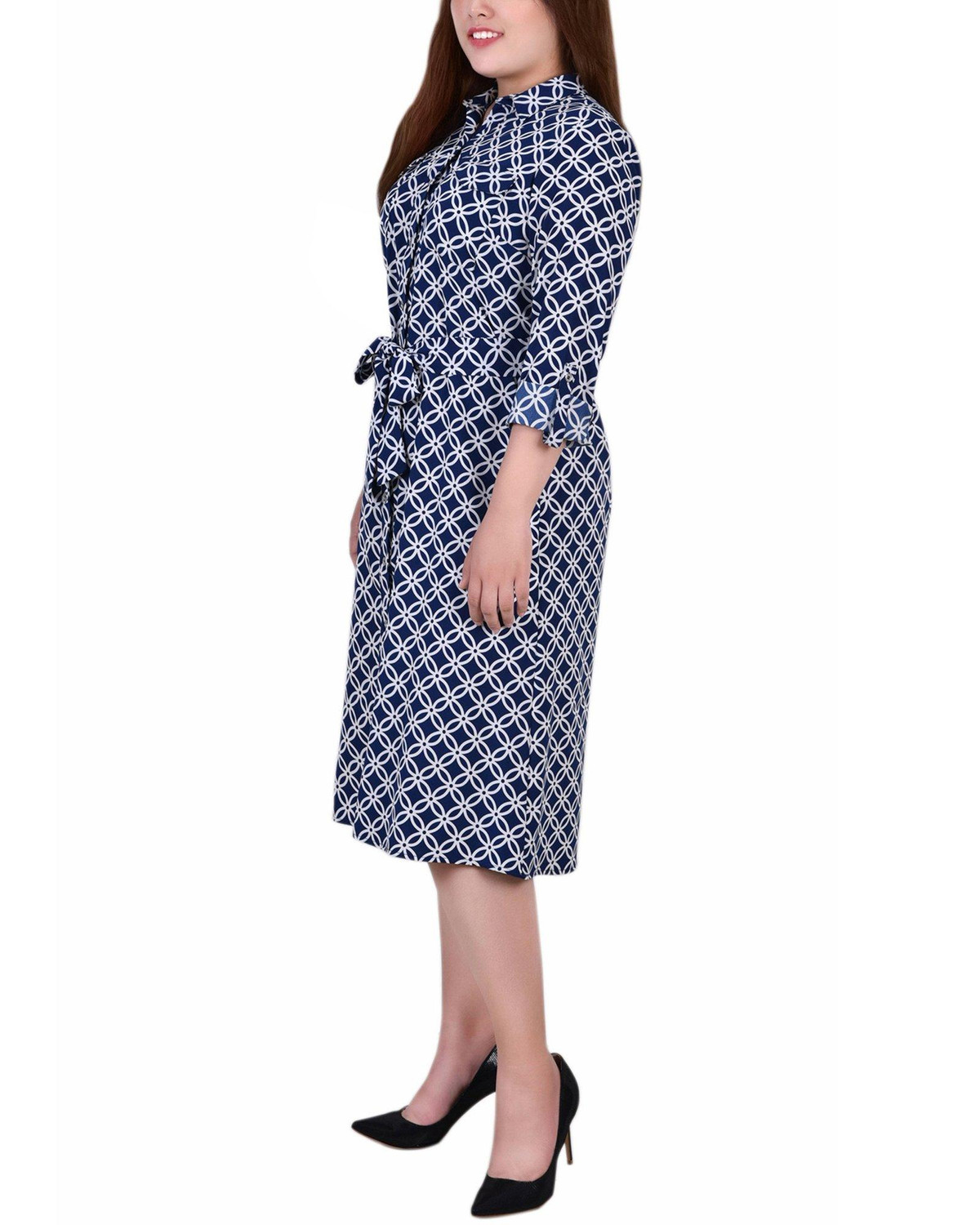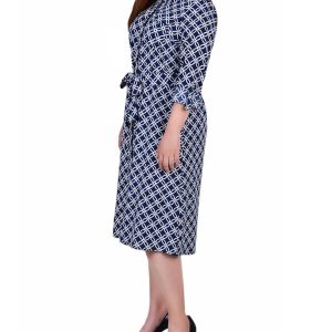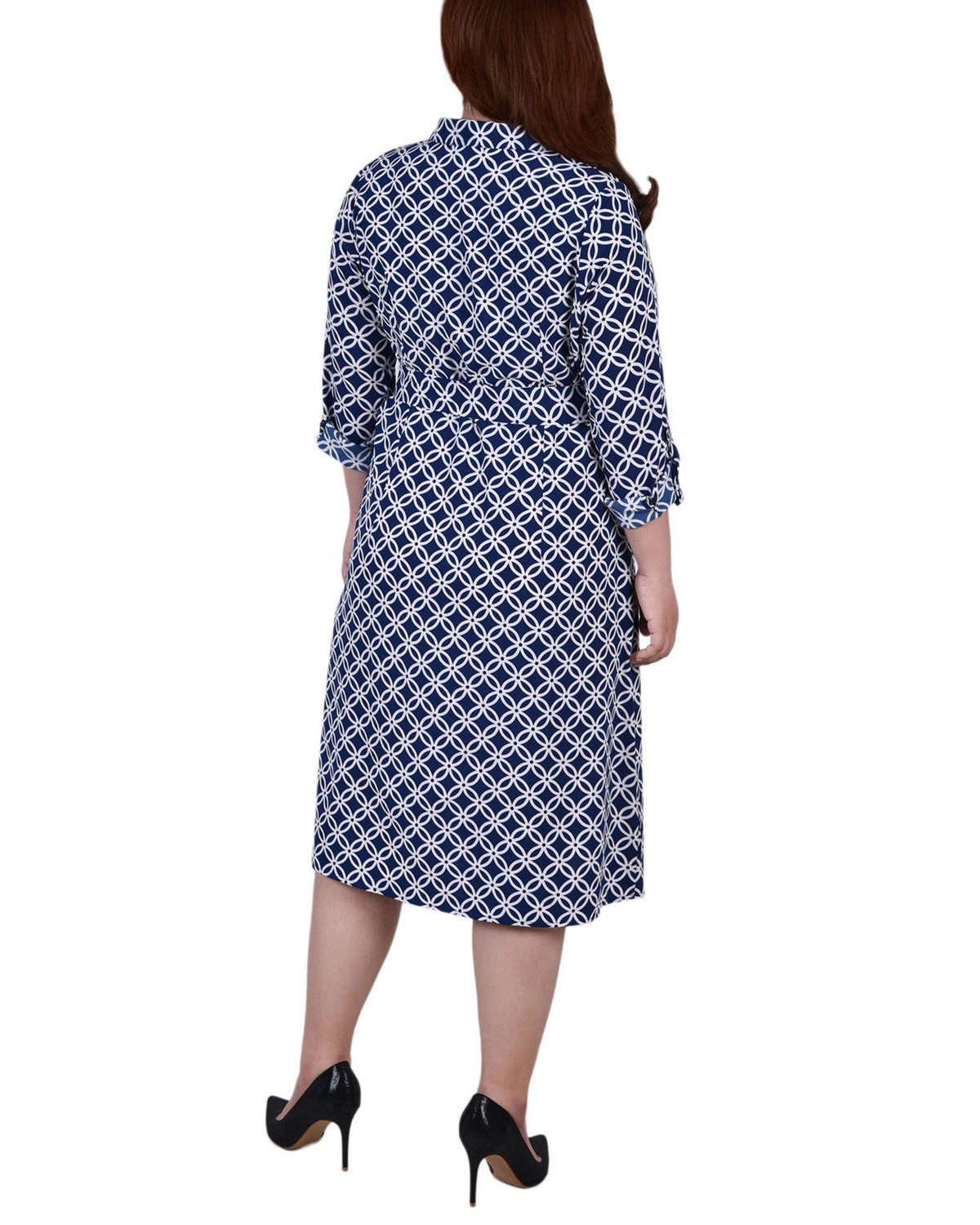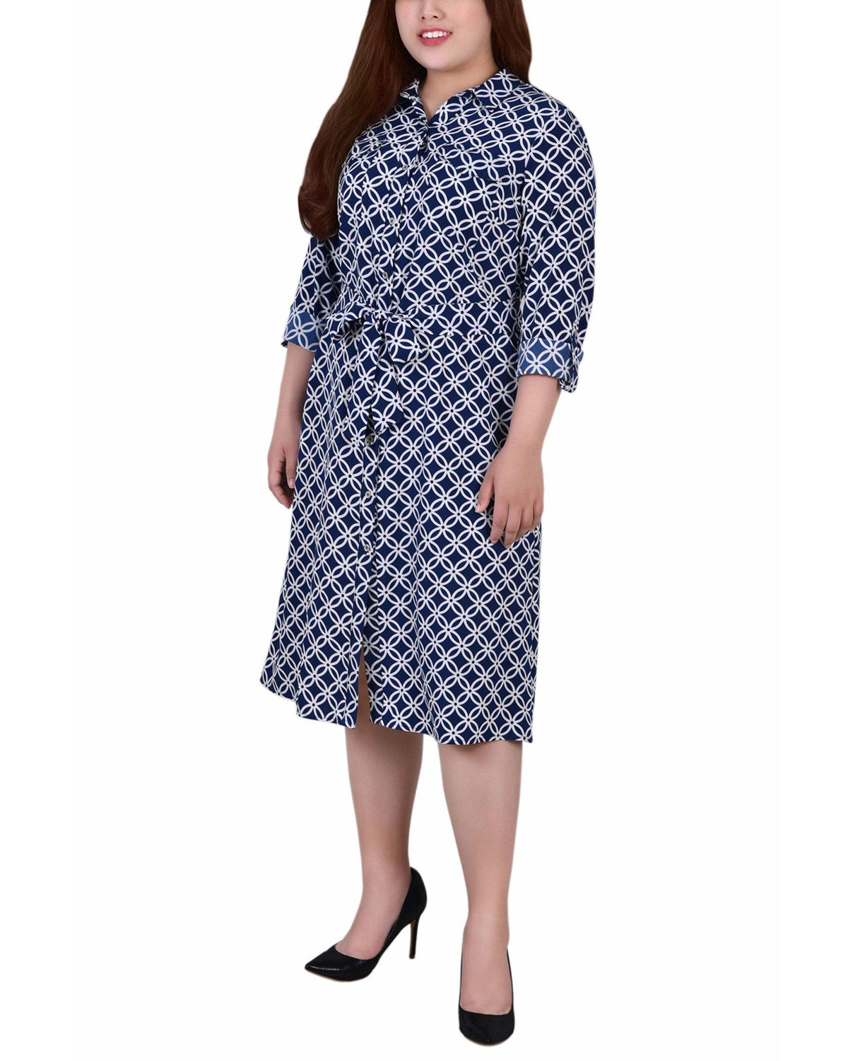 You’ll always be in style with this classic shirt-dress from NY Collection with its full button front and self belt.