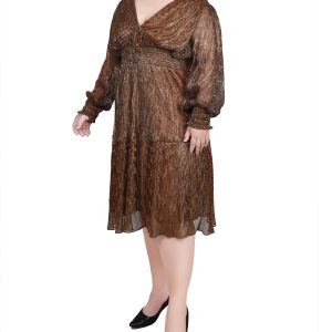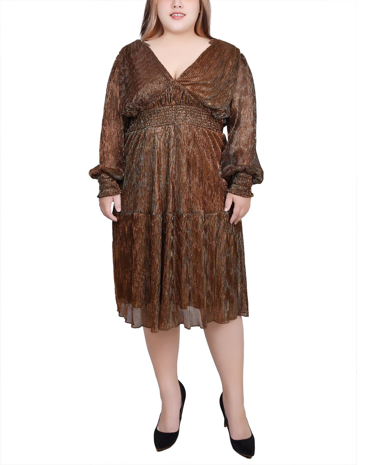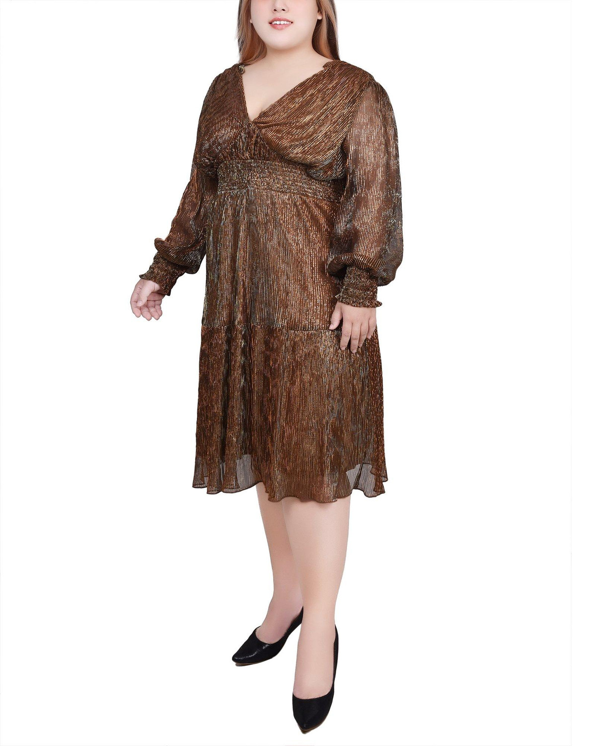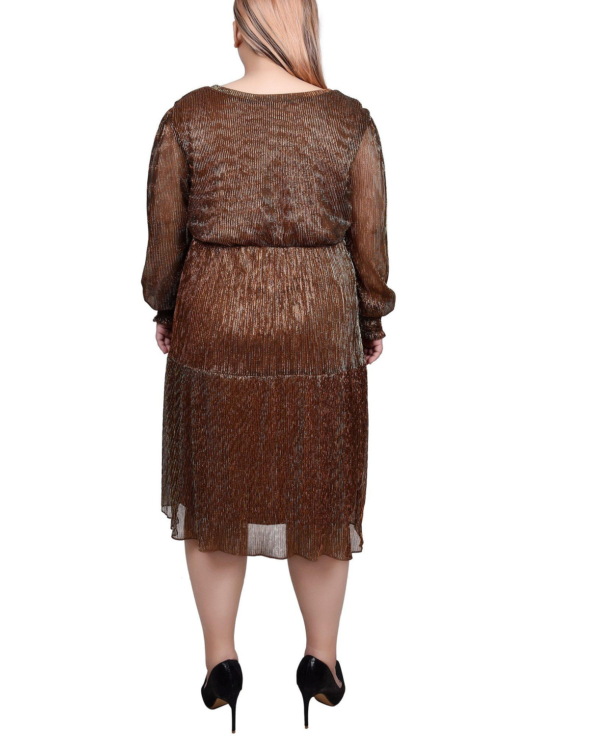 This elegant long sleeve NY Collection Plus plisse mesh dress is crafted with subtle lurex detail to give it an exclusive, sophisticated look. Wear it to evening occasions for a timelessly chic style.