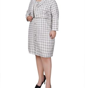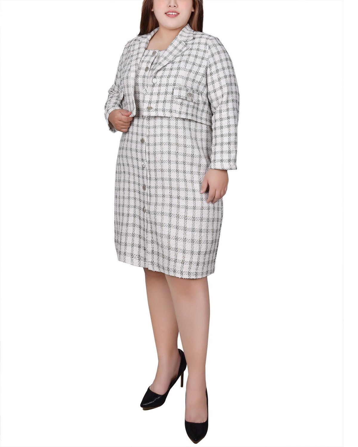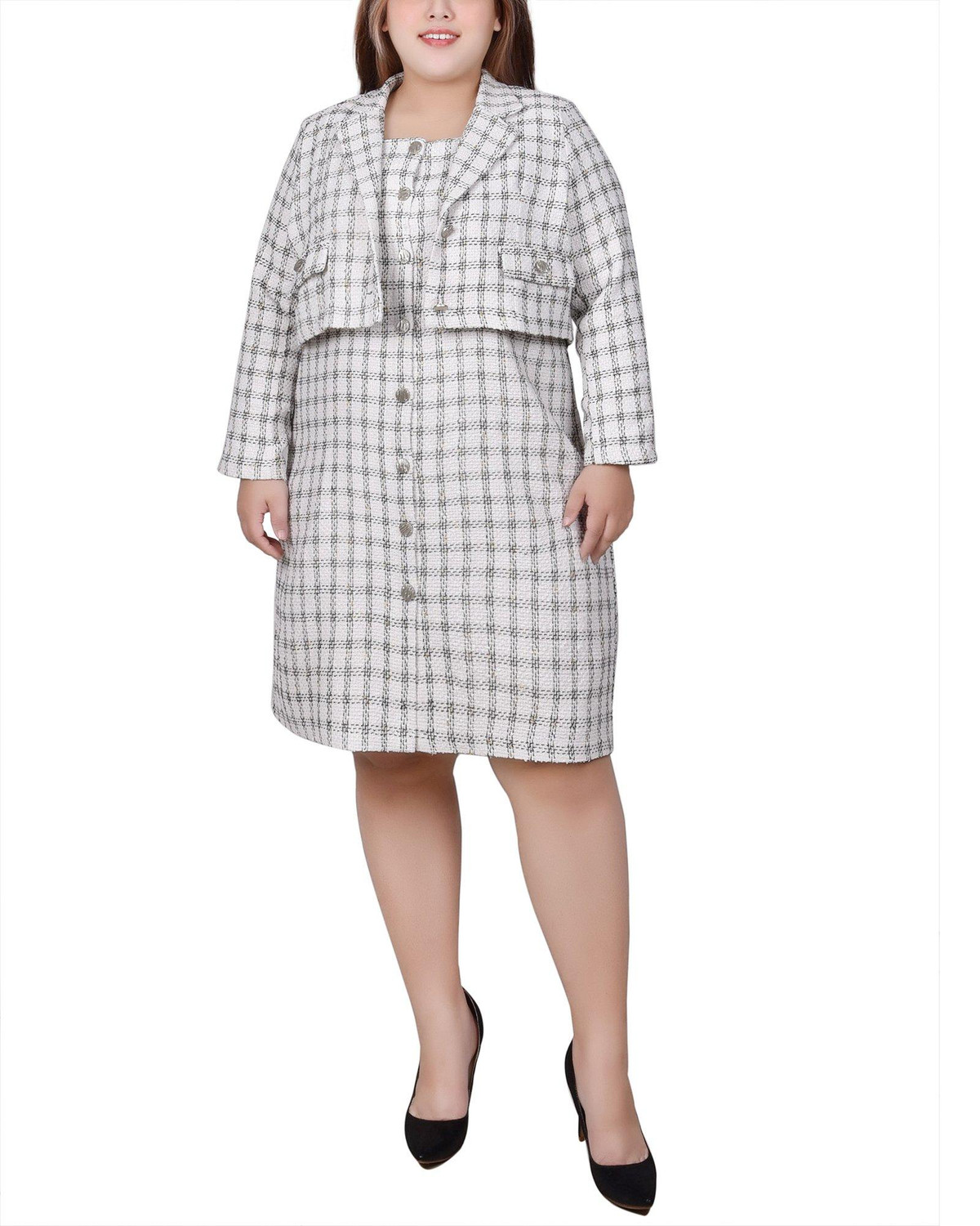 NY Collection Plus Long Sleeve Tweed Dress Set