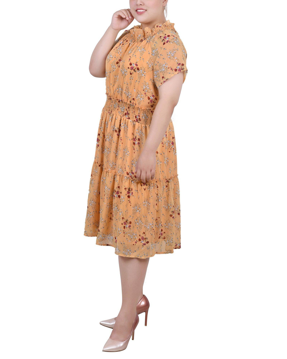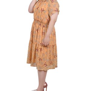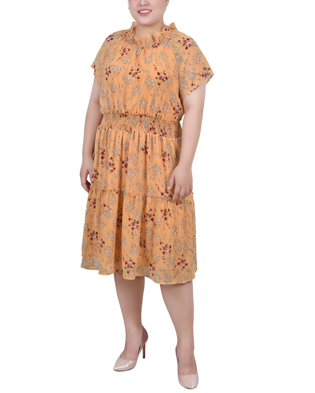 With ruffled neck and smocked waist, this NY Collection dress is perfect for office days and cocktail parties alike.
