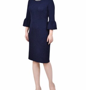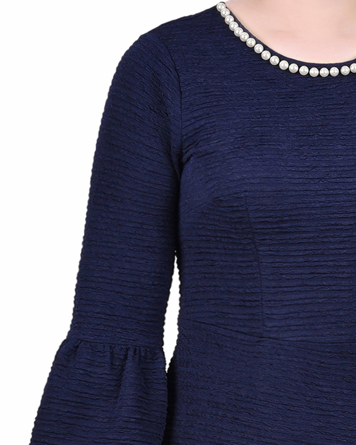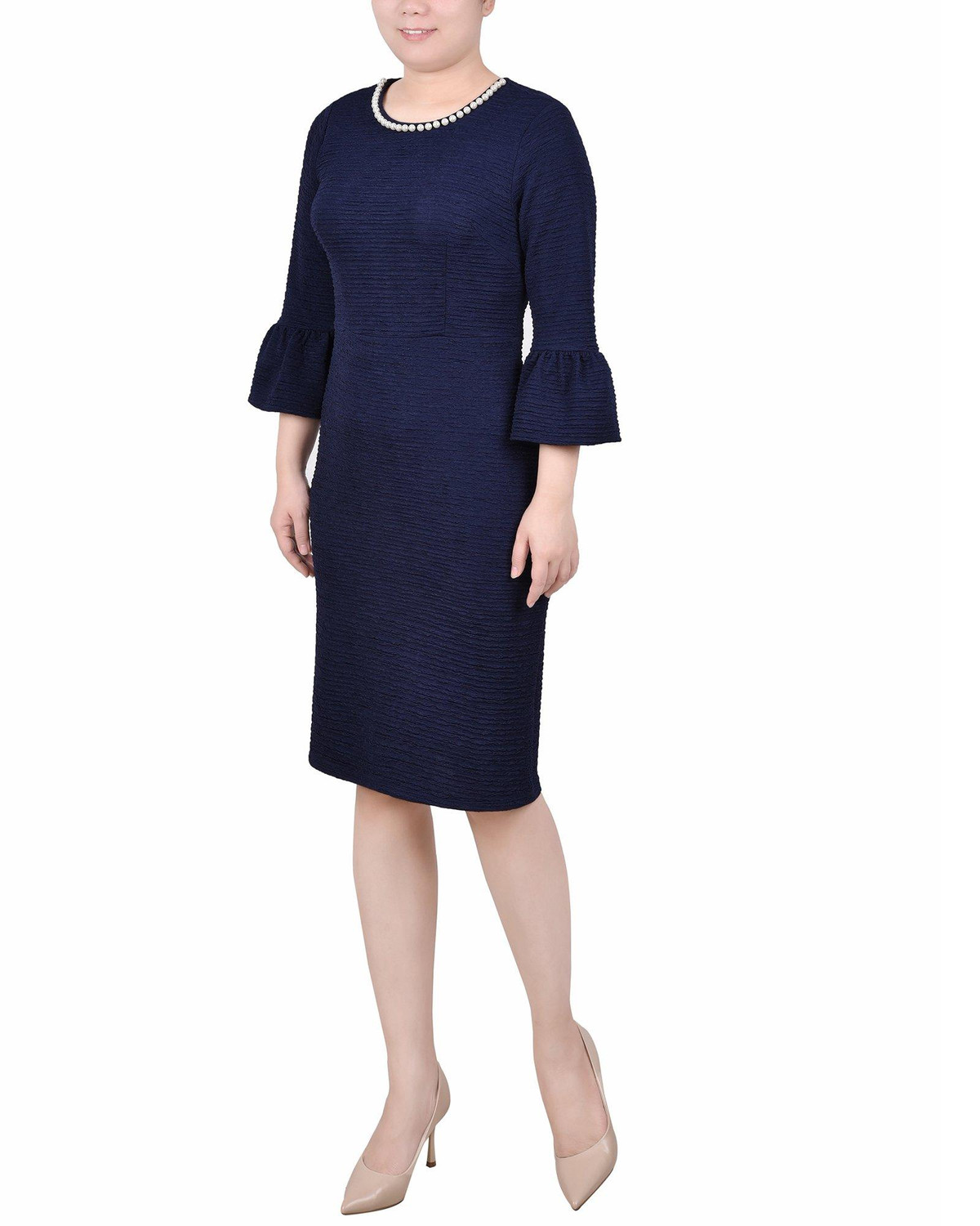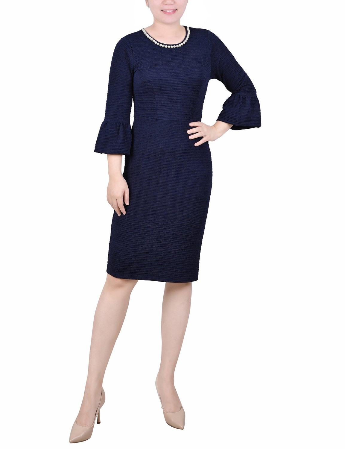 NY Collection Womens 3/4 Length Pearl Detail Dress