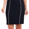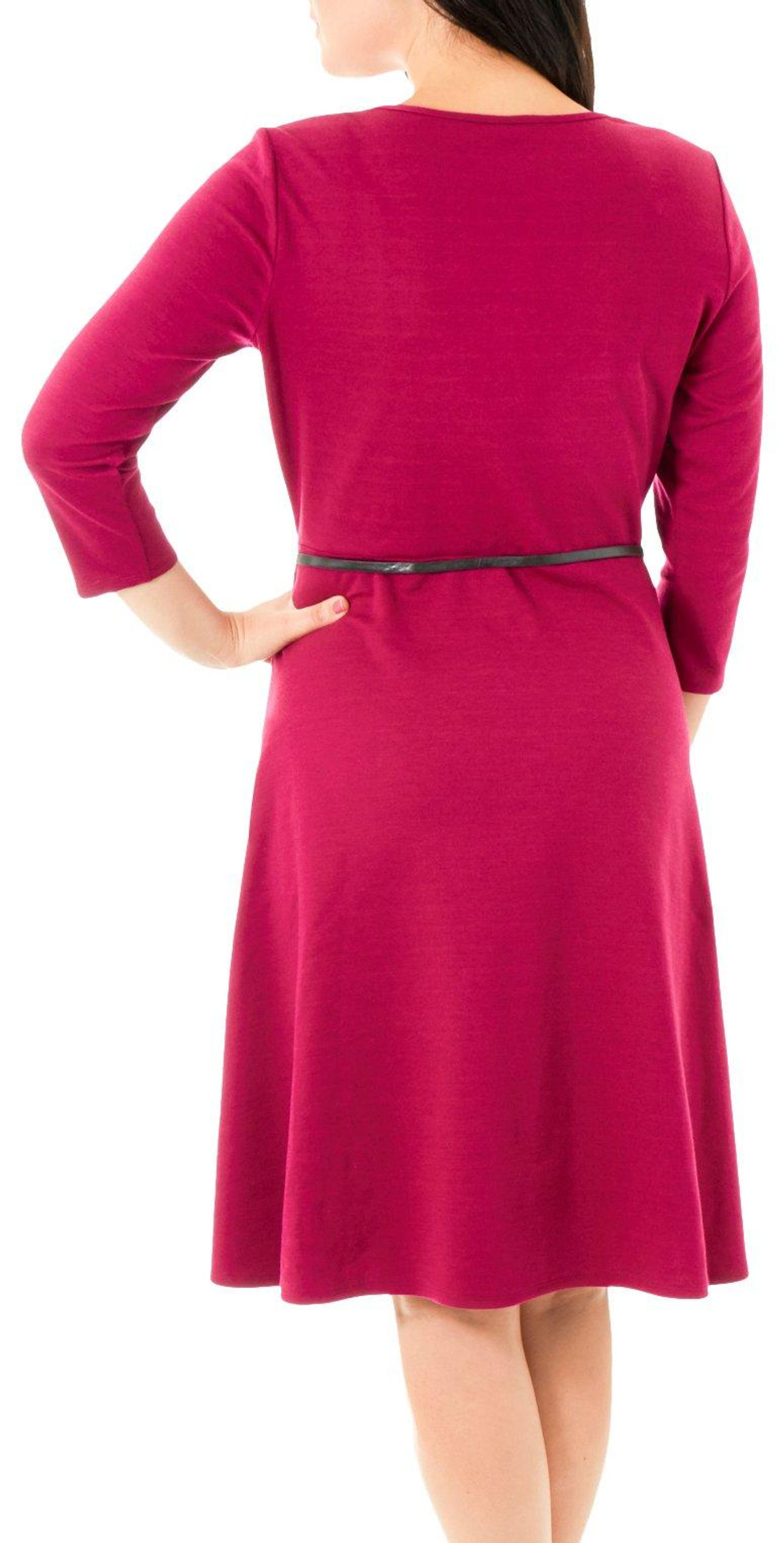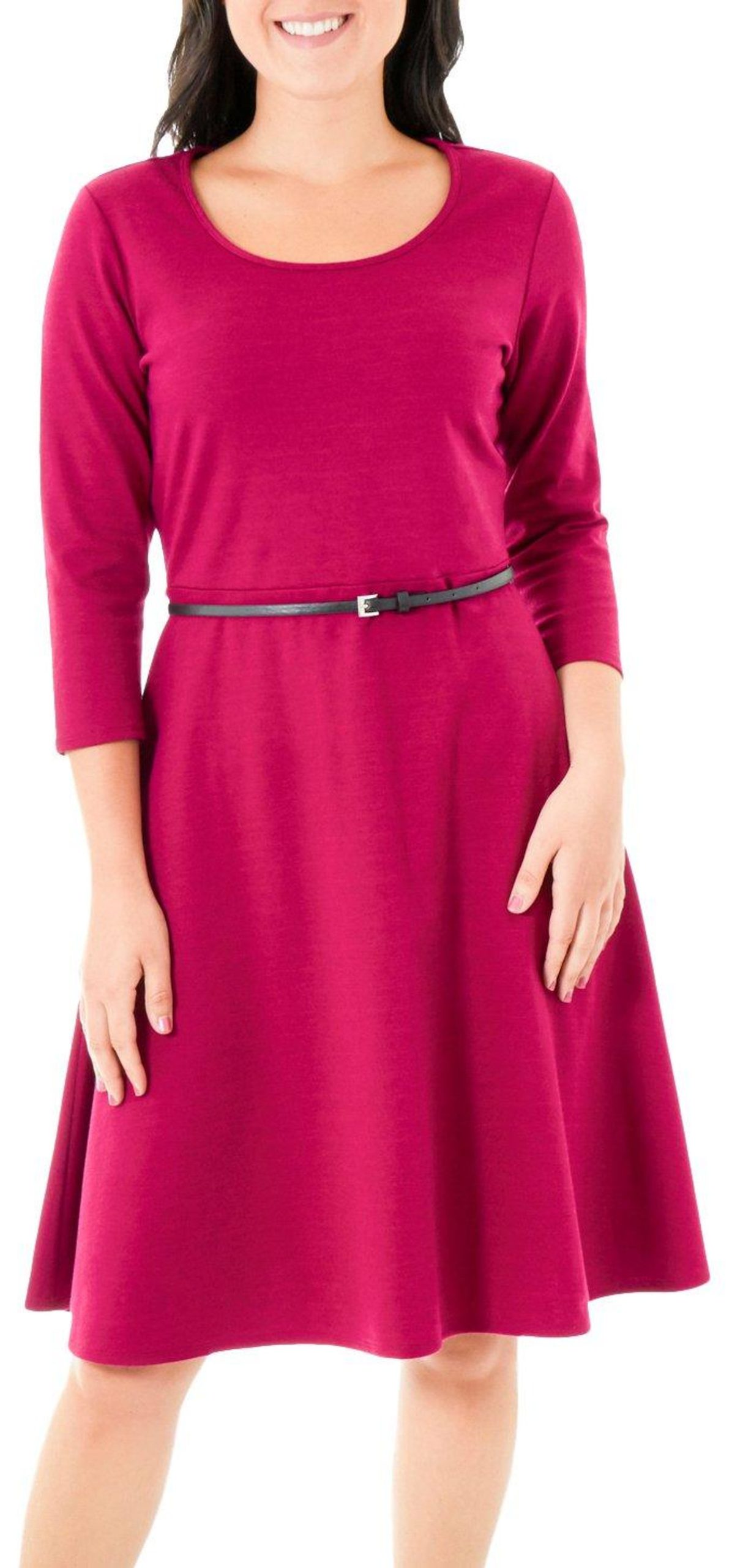NY Collection brings a comfortable and stylish look to your wardrobe. Finished with a contrast belt, this solid ponte dress offers a complete look that is sleek and sophisticated for work or weekend. Length is approximately 39 inches from size medium.