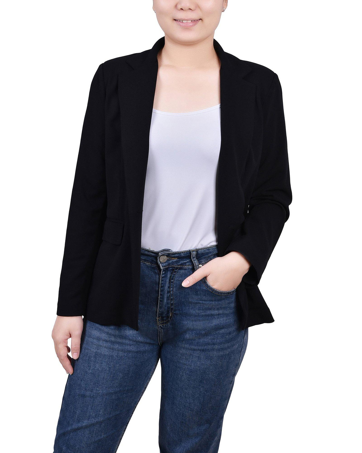 Dress up your everyday look with this crepe jacket from NY Collection.