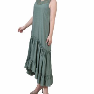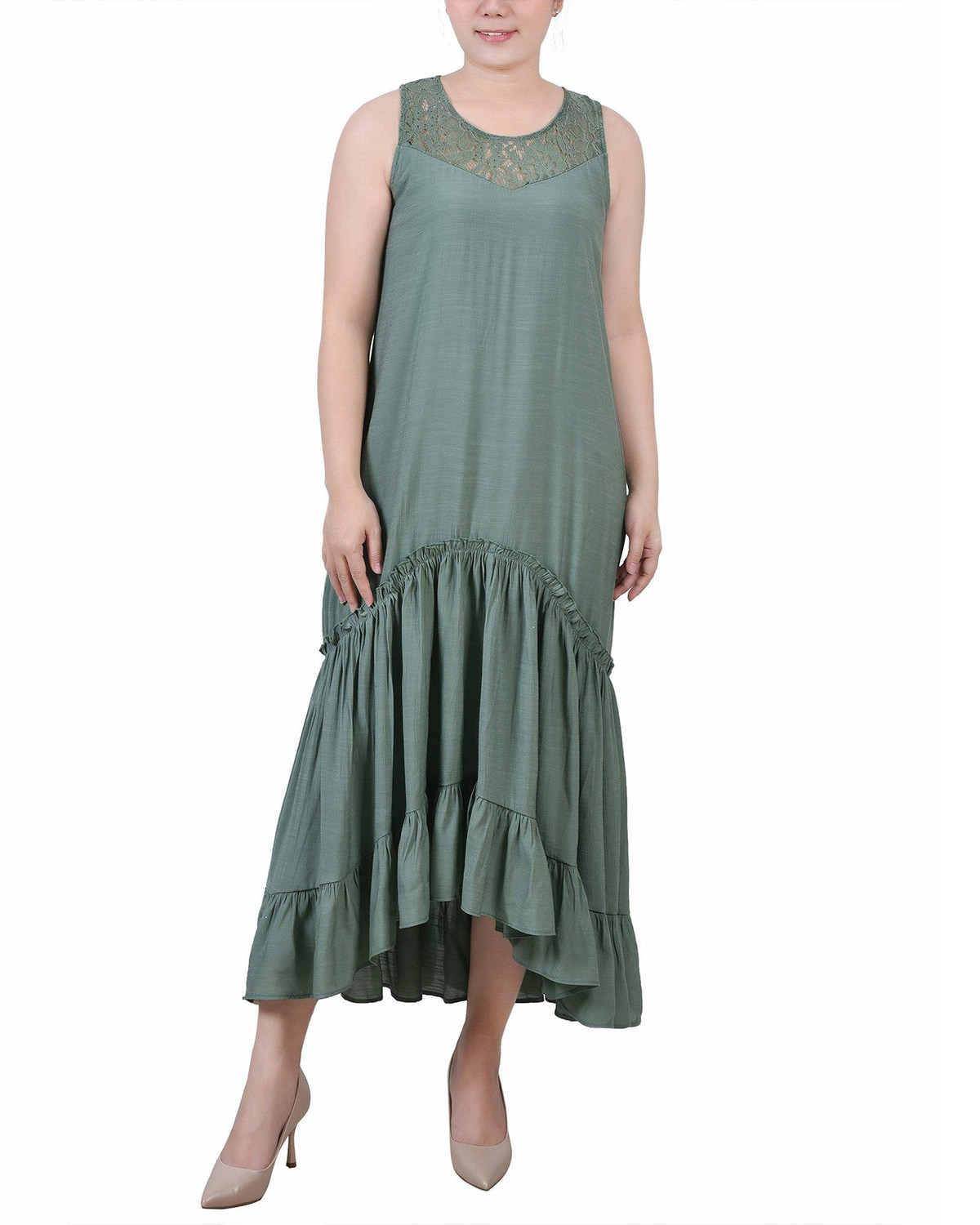 Enjoy the summer warmth in this lace-yoked maxi dress from NY Collection.