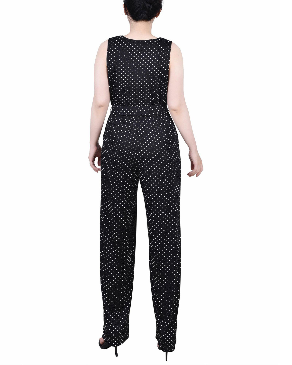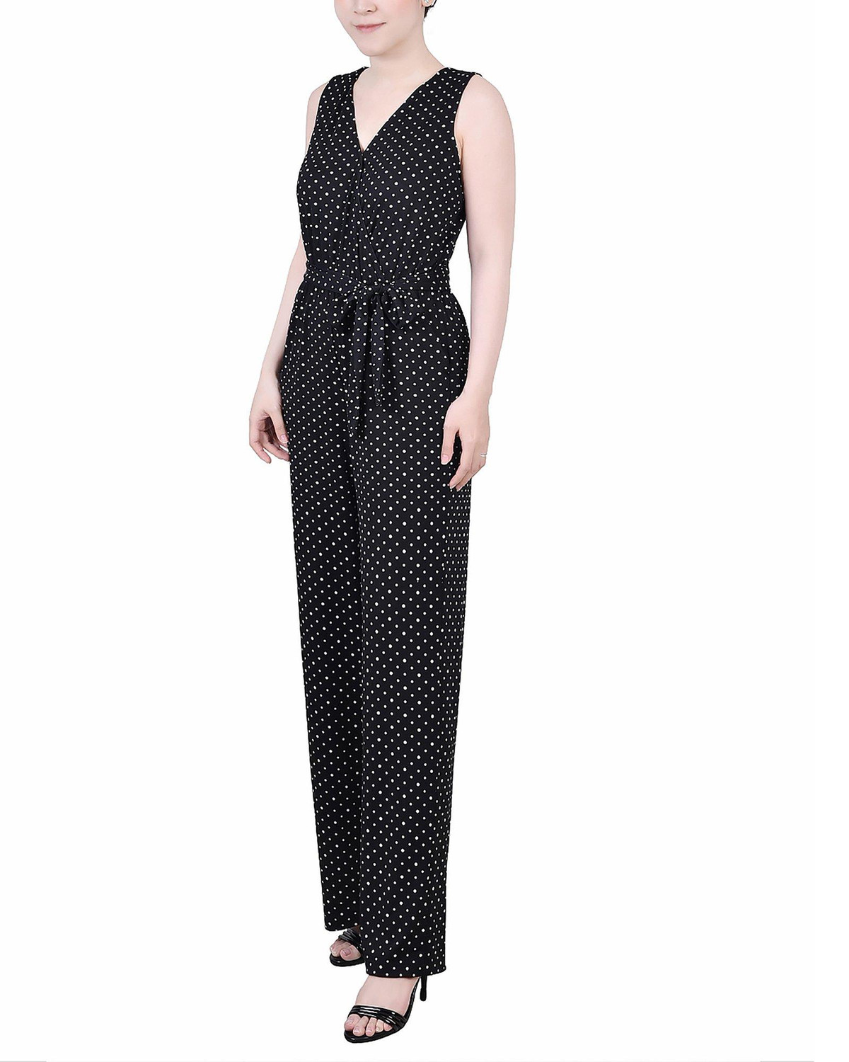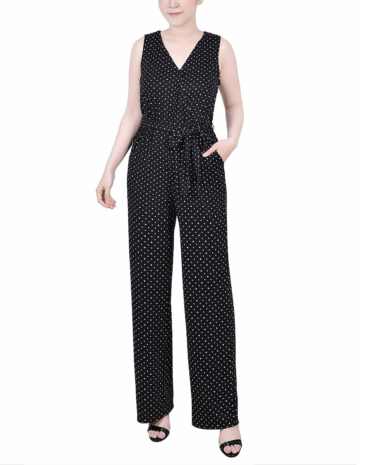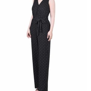 NY Collection Womens Petite Sleeveless Belted Jumpsuit