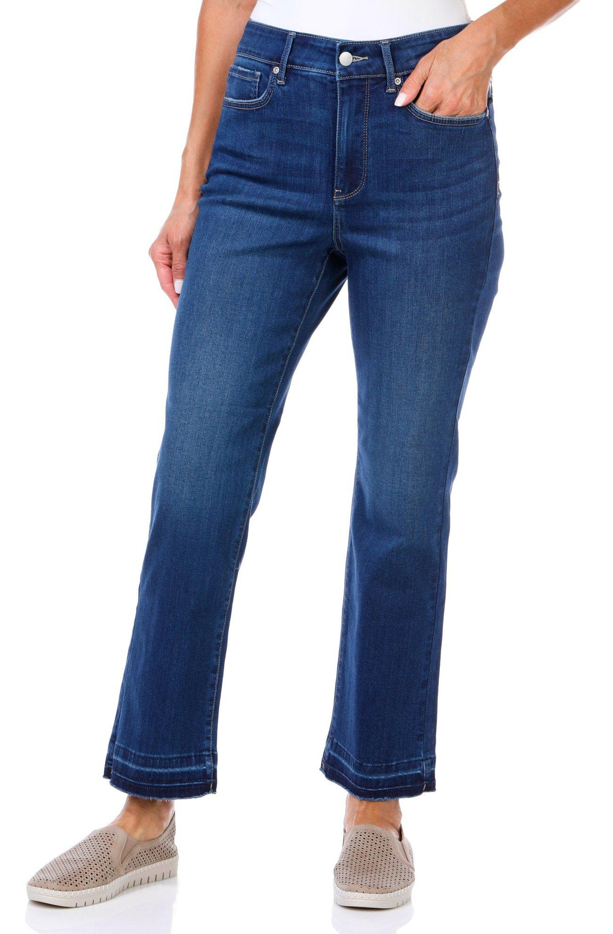 Step into everyday style with the Women’s 27 in Marilyn Ankle Jeans. Featuring a button-fly zip closure and classic 5-pocket cut, these straight-leg jeans offer a flattering fit with a comfy stretch waistband.