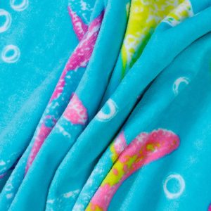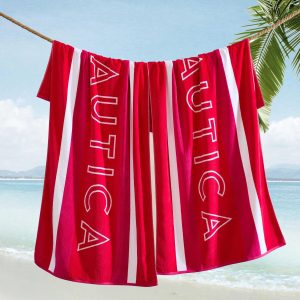 The Izod Oasis Beach Towel features a lush tropical scene with a pink flamingos, pink hibiscus, and a variety of tropical flora printed on an oversized white ground. 100% cotton sheared velour face, terry back, 40 x 70. The perfect addition to your day at the beach or pool!