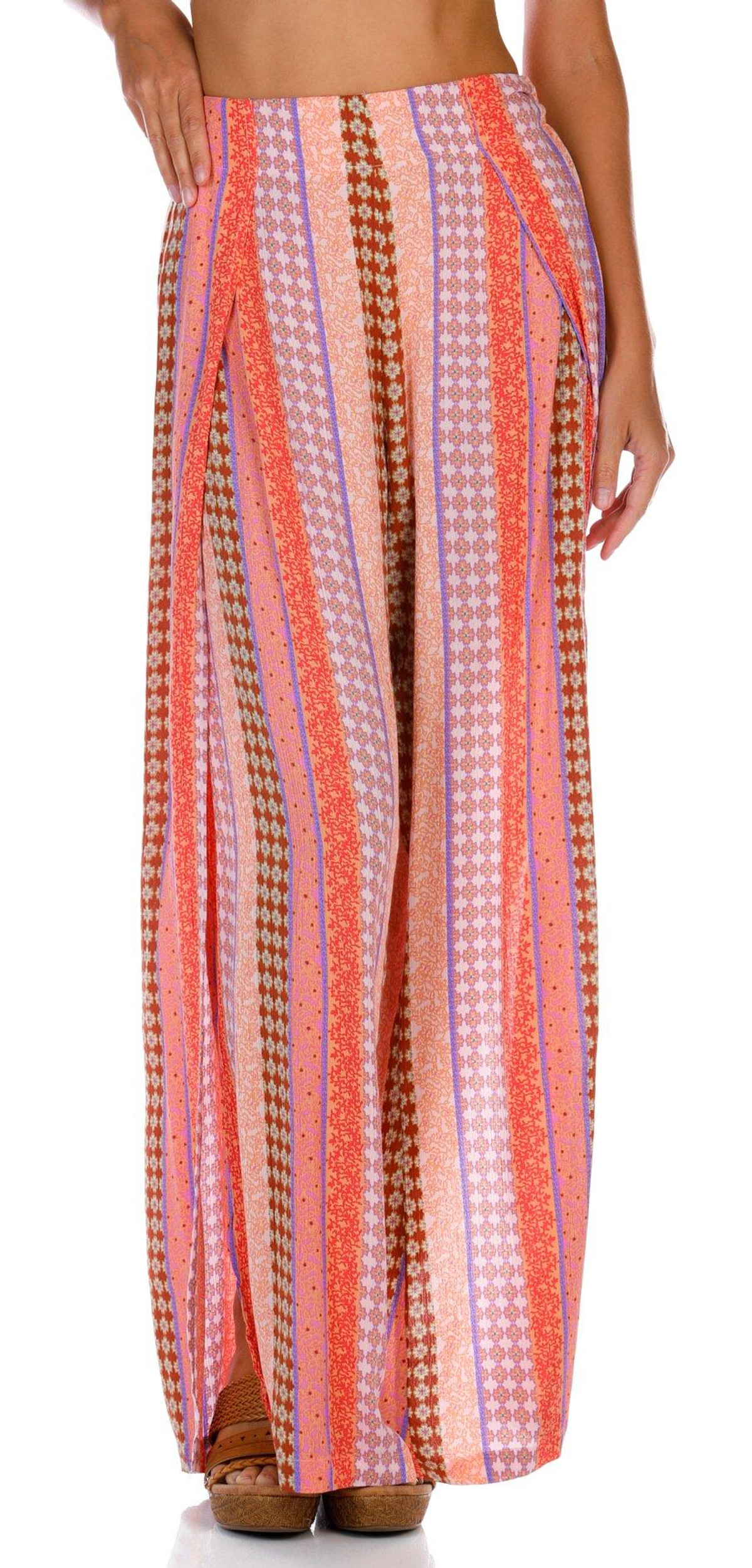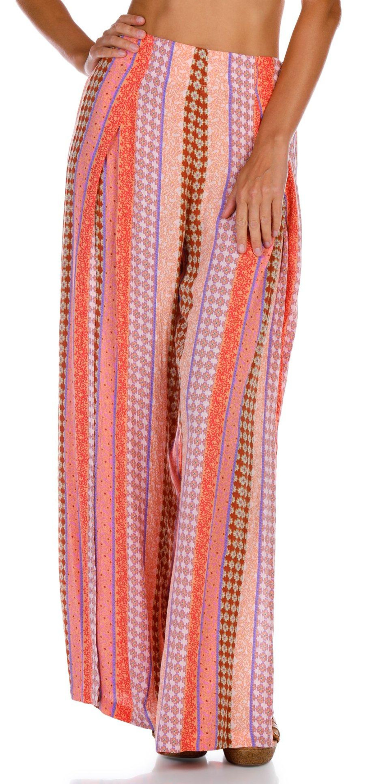 Embrace boho vibes with the Juniors Spirit Split Wide Leg Pants, featuring a bold print, breezy 32-inch inseam, and dramatic leg slits. The flowy wide-leg fit and pull-on waistband offer effortless comfort and standout style for sunny days and festival nights. Fabrication 100% viscose