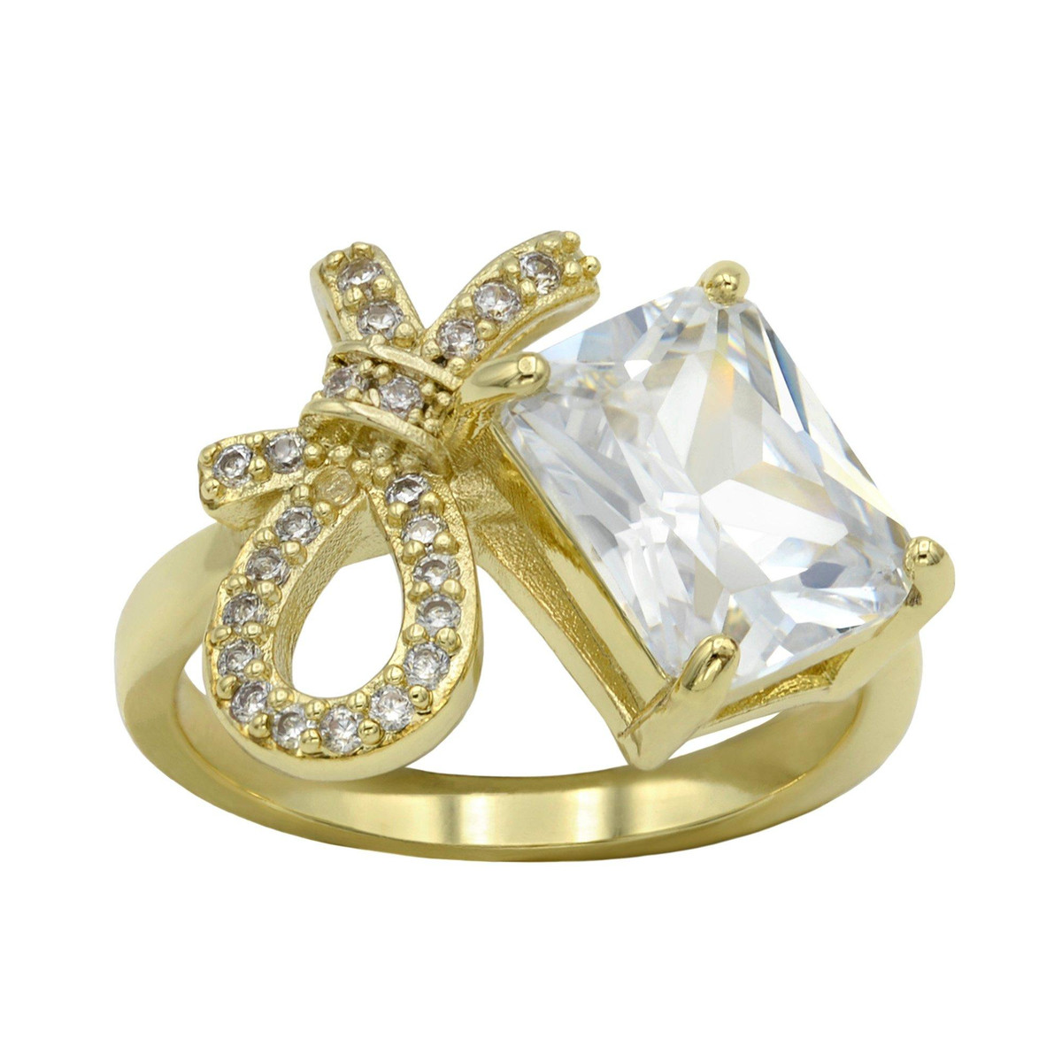 Add a bold touch of elegance with the Gold-Tone Boxed CZ Emerald Pave Twist Ring. Featuring a vibrant emerald-colored center stone and shimmering pave CZ accents in a unique twist design, this ring brings glamour to any occasion.
