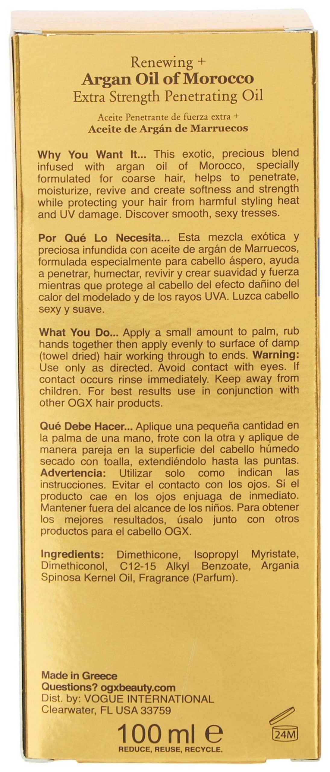 Argan Oil Of Morocco Extra Strength Penetrating Oil is formulated for coarse hair to penetrate, moisturize, revive and create softness and strength while protecting your hair from harmful styling heat and UV damage. 3.3 fl. oz.