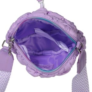 The Girls Scrunch Crossbody Bag adds a playful touch with its solid color and scrunched design. It features a top zip compartment for secure storage and an adjustable strap for a comfortable crossbody fit, perfect for everyday adventures. Measures 7 x 2 x 6 in.