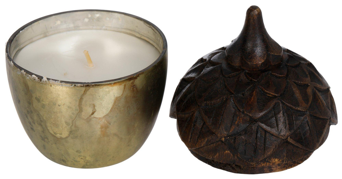 Bring woodland warmth to any room with this 4 in Acorn Candle – Balsam Tree. Housed in an acorn-shaped container with a removable top, it reveals a single-wick candle infused with the crisp, earthy scent of balsam. Perfect for seasonal décor or gifting. For best results, trim wick before each use. Measures approximately 4 in x 6 in.