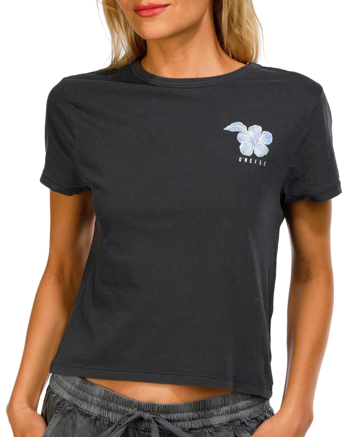 Introducing the Juniors Palmetto Crop Top, crafted from 100% cotton for a soft and breathable feel. This stylish top features a classic crew neckline and short sleeves, ensuring comfort and versatility. The brand script on the chest and back adds a trendy touch, while the cropped length offers a modern, fashionable look. Perfect for casual outings or layering, this crop top is a must-have addition to your wardrobe. Embrace effortless style with this chic and comfortable piece.