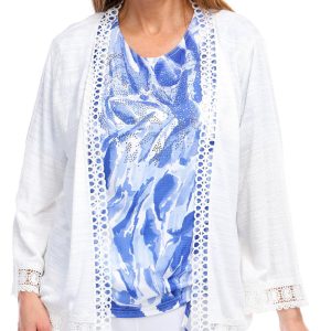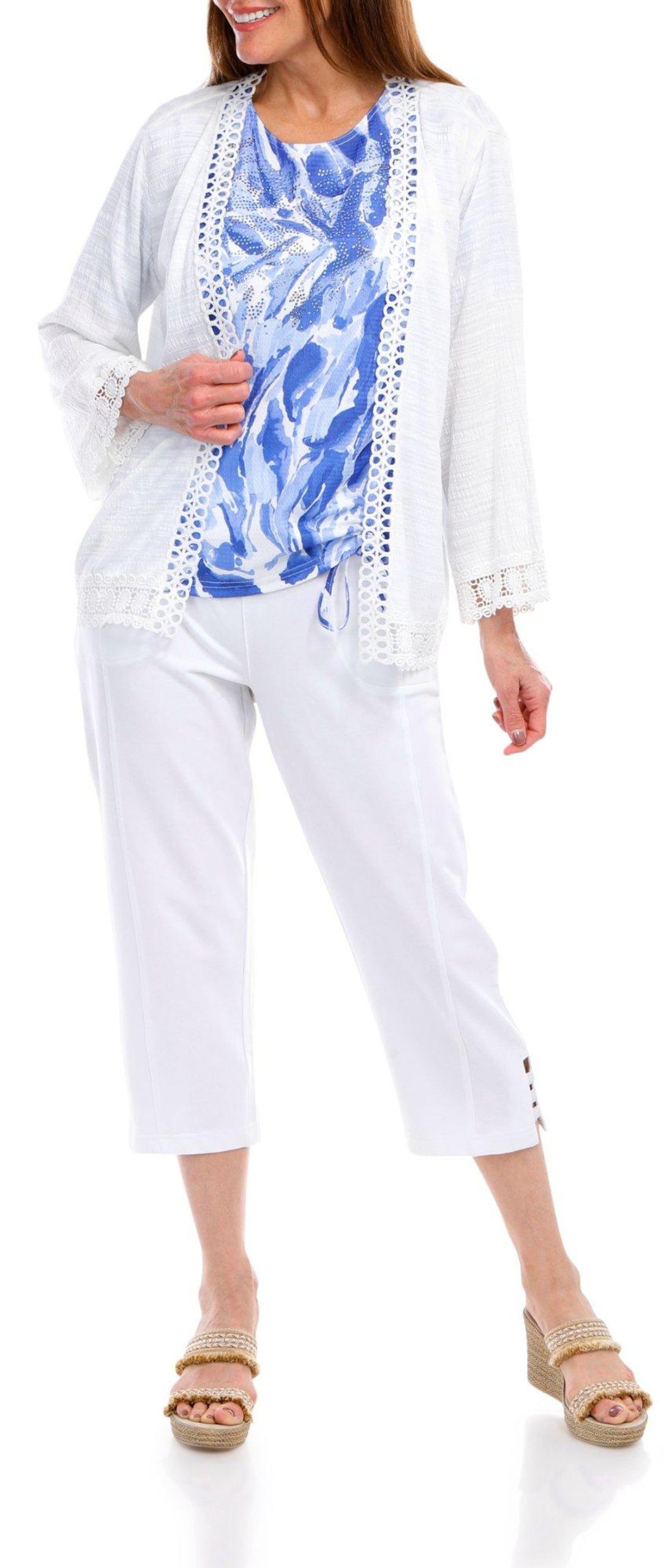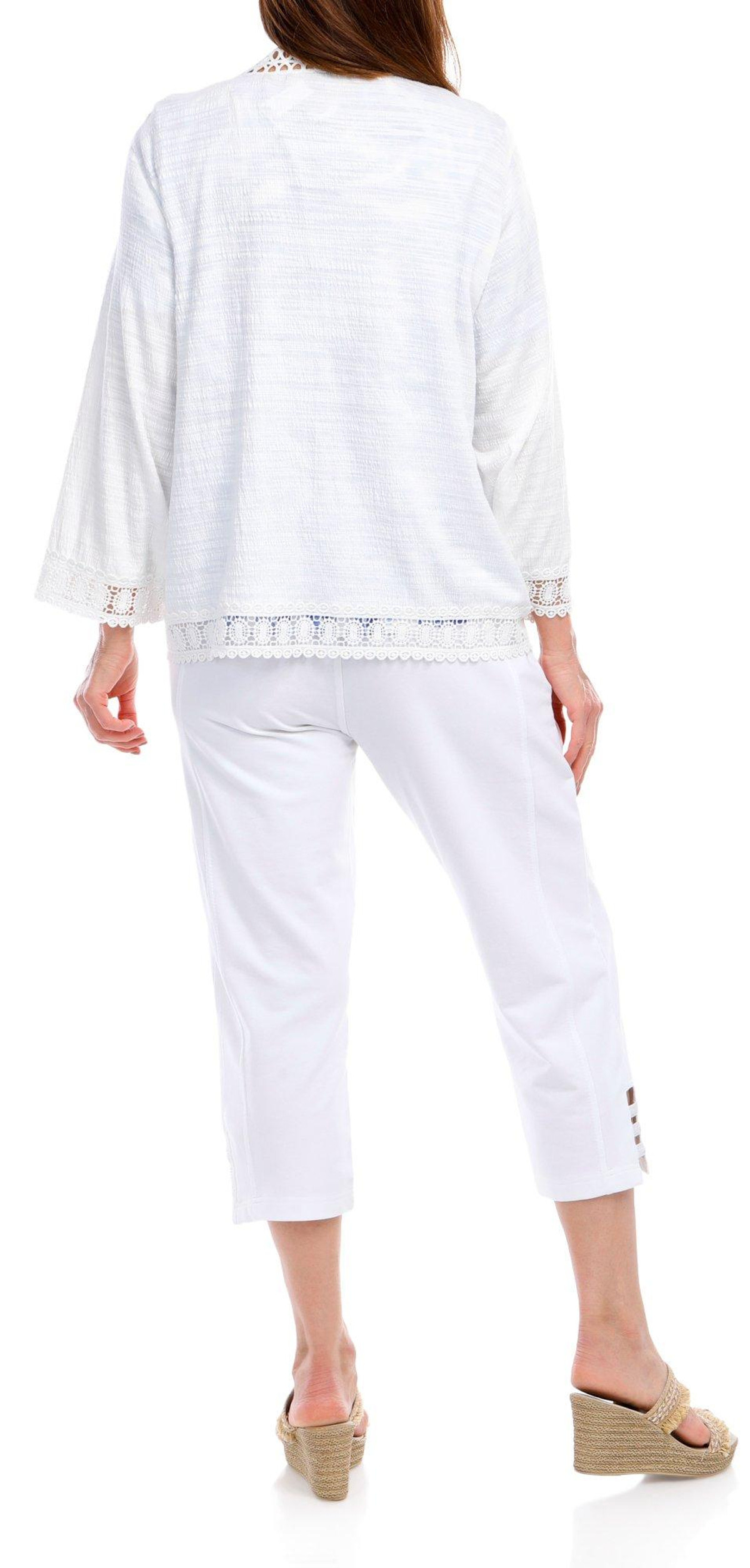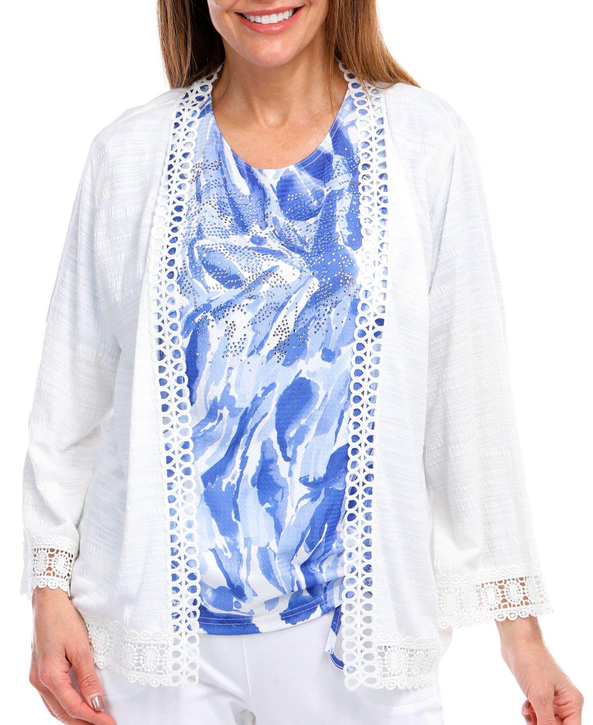 Wrap yourself in elegance with this Long Sleeve Lace Trim Cardigan. Featuring a delicate lace trim and an open front design, this cardigan adds a touch of sophistication to any outfit. Crafted from soft, comfortable fabric, it ensures all-day comfort while providing a stylish layer. Perfect for both casual and dressy occasions, this versatile piece pairs effortlessly with dresses, jeans, or skirts. Fabrication is 71% polyester, 28% rayon, 1% spandex.