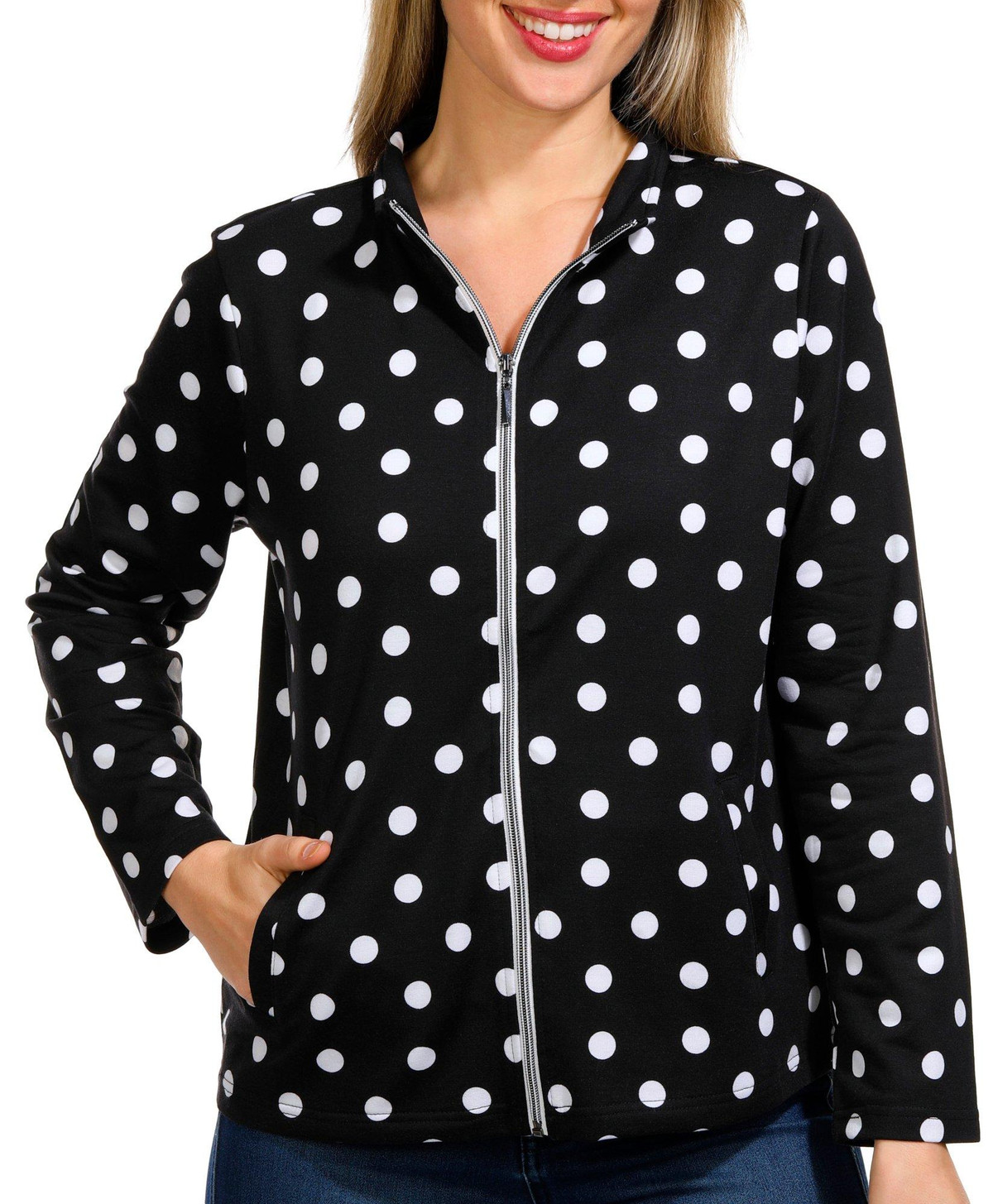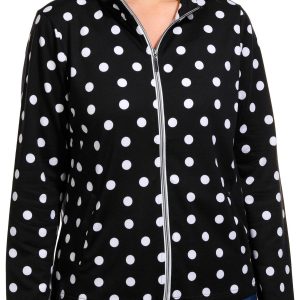 Elevate your style with our Zipped Long Sleeve Jacket, featuring a playful polka dot print that adds a touch of whimsy to any outfit. Designed for both comfort and functionality, this jacket boasts double front pockets, perfect for keeping your essentials close at hand. Whether you’re heading out for a casual day or a night on the town, this versatile piece will keep you looking chic and feeling cozy. Fabrication is 89% polyester, 8% rayon, and 3% spandex.