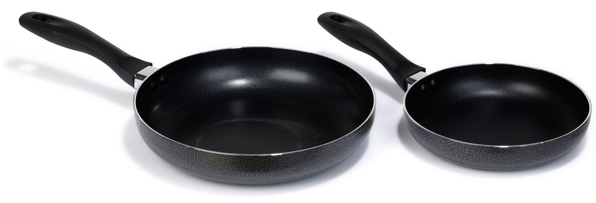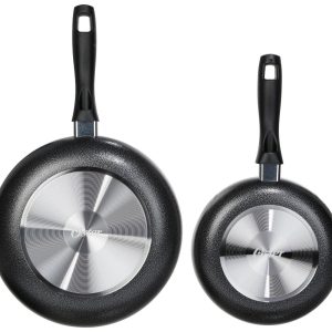 Enhance your cooking experience with this 2-pack of Aluminum Frying Pans. Featuring a nonstick interior, these pans are perfect for low-fat cooking and easy cleanup. The aluminum construction ensures even heat distribution, while the bake-lite handles stay cool to the touch for safe and comfortable use. Ideal for everyday cooking, these frying pans combine functionality and convenience, making them a must-have addition to your kitchen. One measures 8 in. One measures 10 in.