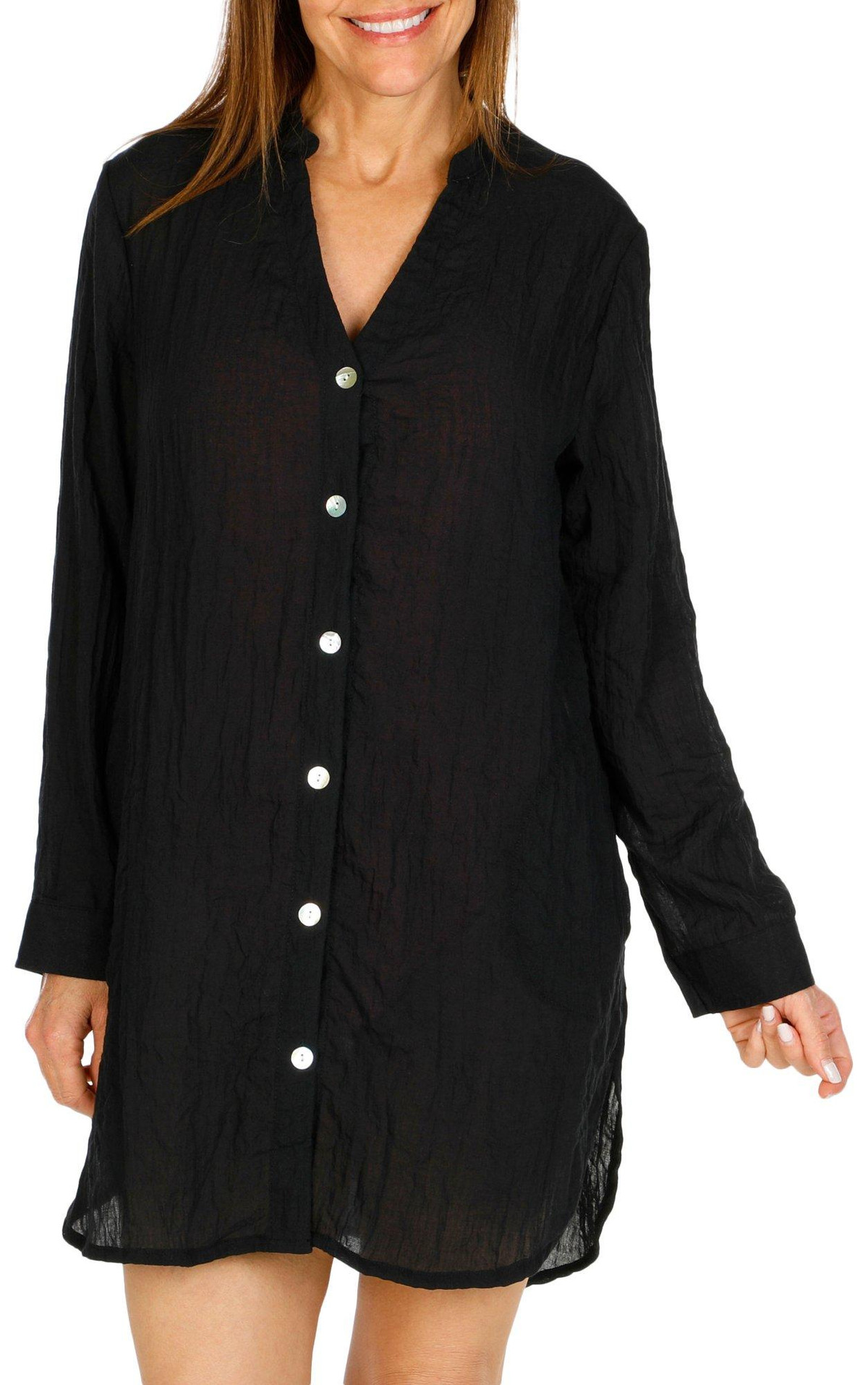 Get ready for a day at the beach or pool in this easy and effortlessly stylish Breeze Coverup shirt. It features a light and airy design, full buttoned front, buttoned cuffs, and a chic oversized look. Fabrication is 80% polyester and 20% cotton.