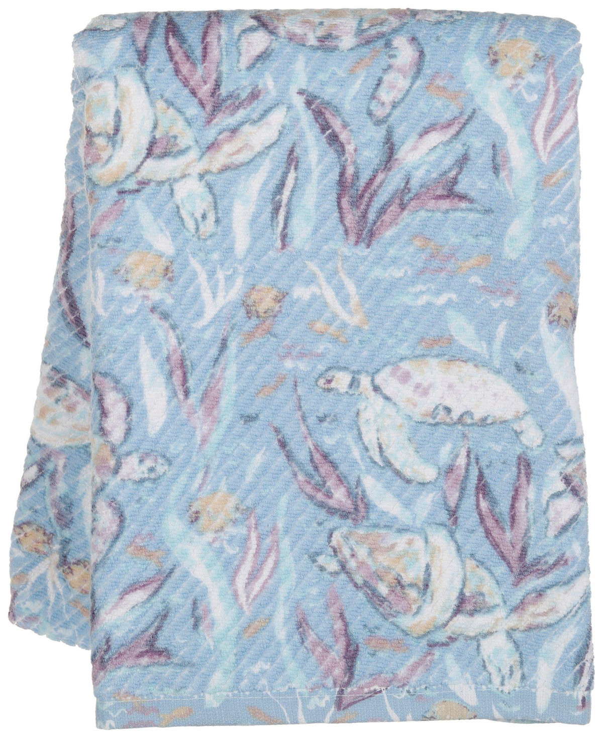 Introducing the Turtle Treasure Towel Collection, where tranquility meets vibrant design. Made from soft cotton, these towels provide a gentle touch and exceptional absorbency. The colorful print adds a refreshing coastal vibe to your bathroom decor. Bath towel measures 27 in x 52 in. Hand towels (2 pack) measure 16 in x 26 in. Fingertip towels (2 pack) measure 12 in x 18 in. Towel collection is not a set. Each sold separately.
