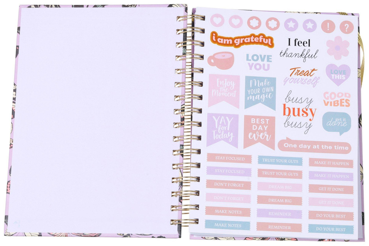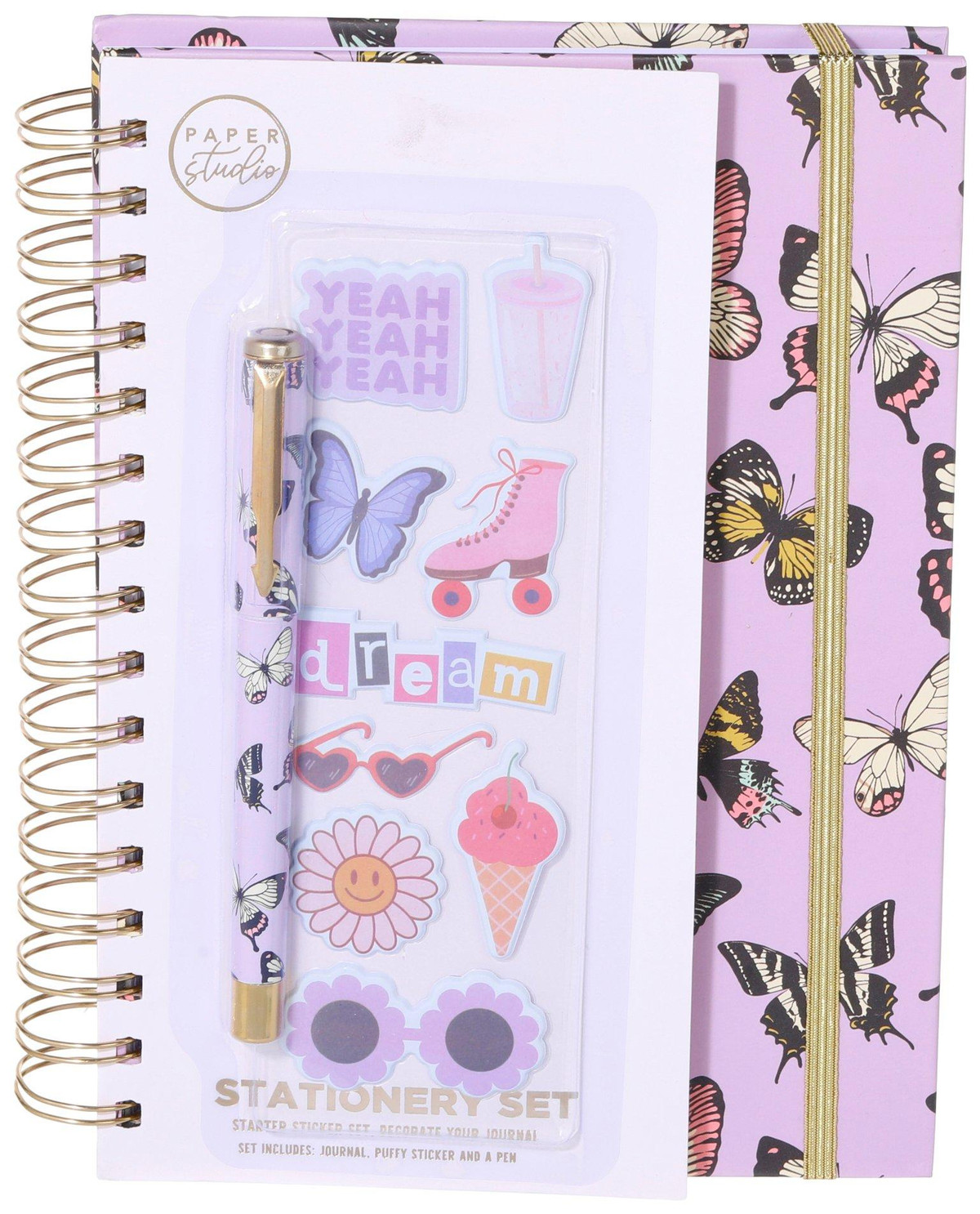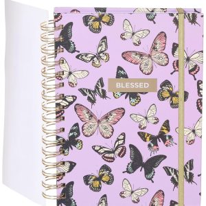 This spiral journal features a charming butterfly design and comes complete with a matching pen and coordinating stickers. Perfect for notes, lists, or journaling, it’s a stylish way to stay inspired and organized. Measures approximately 8.5 in x 6.5 in.