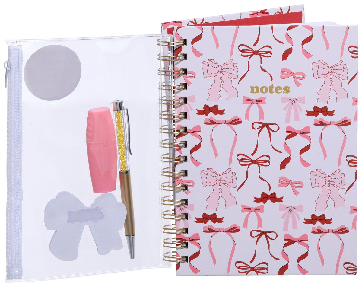 Keep your thoughts and essentials in one stylish place with this Journal Set! Designed for convenience and creativity, this set features a hardcover journal, a sleek pen, and a zipper case holder to store small must-haves. This set.