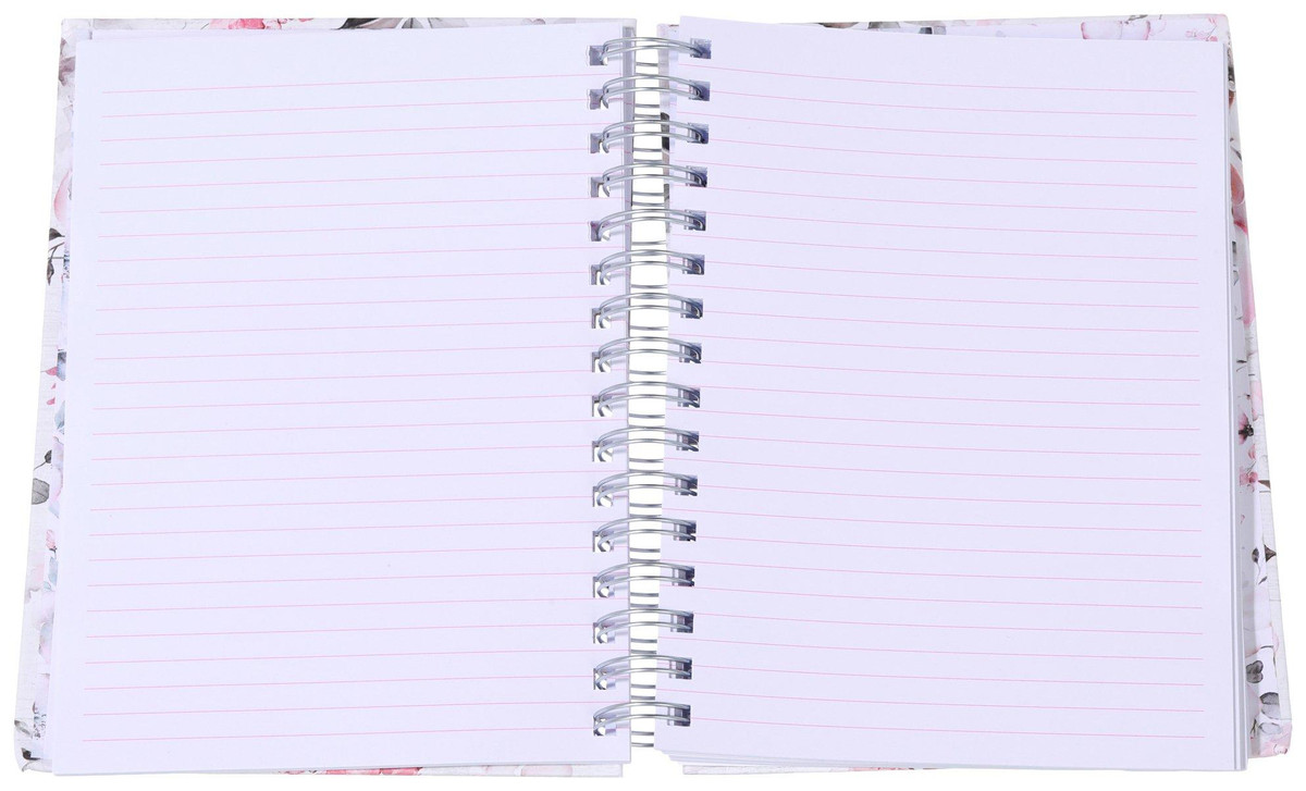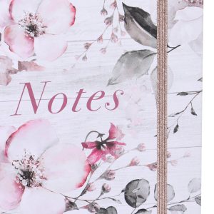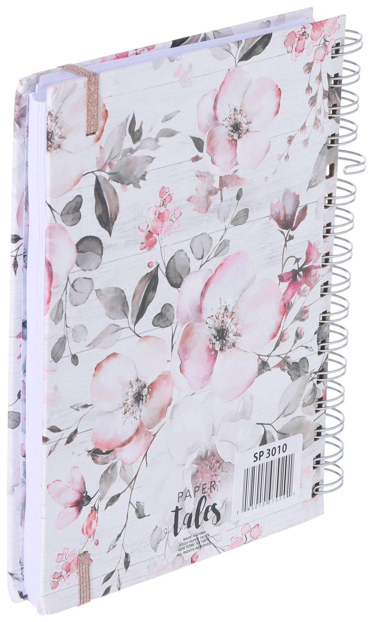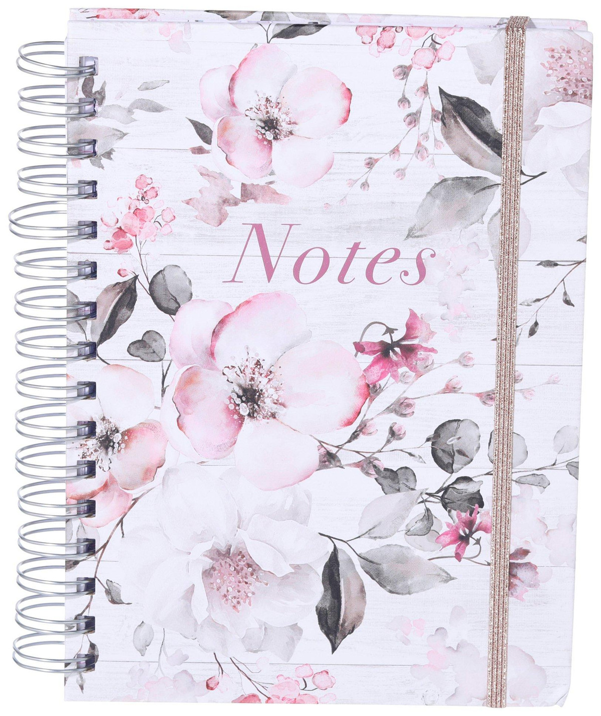 This spiral journal features a floral design set against a rustic shiplap background, combining charm and functionality. An elastic band keeps it securely closed for easy organization on the go. Measures approximately 8.5 in x 6.5 in.