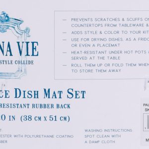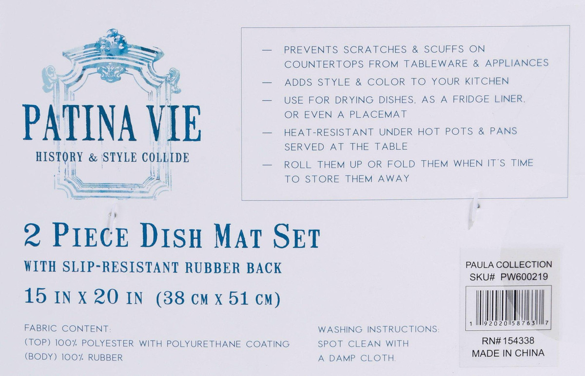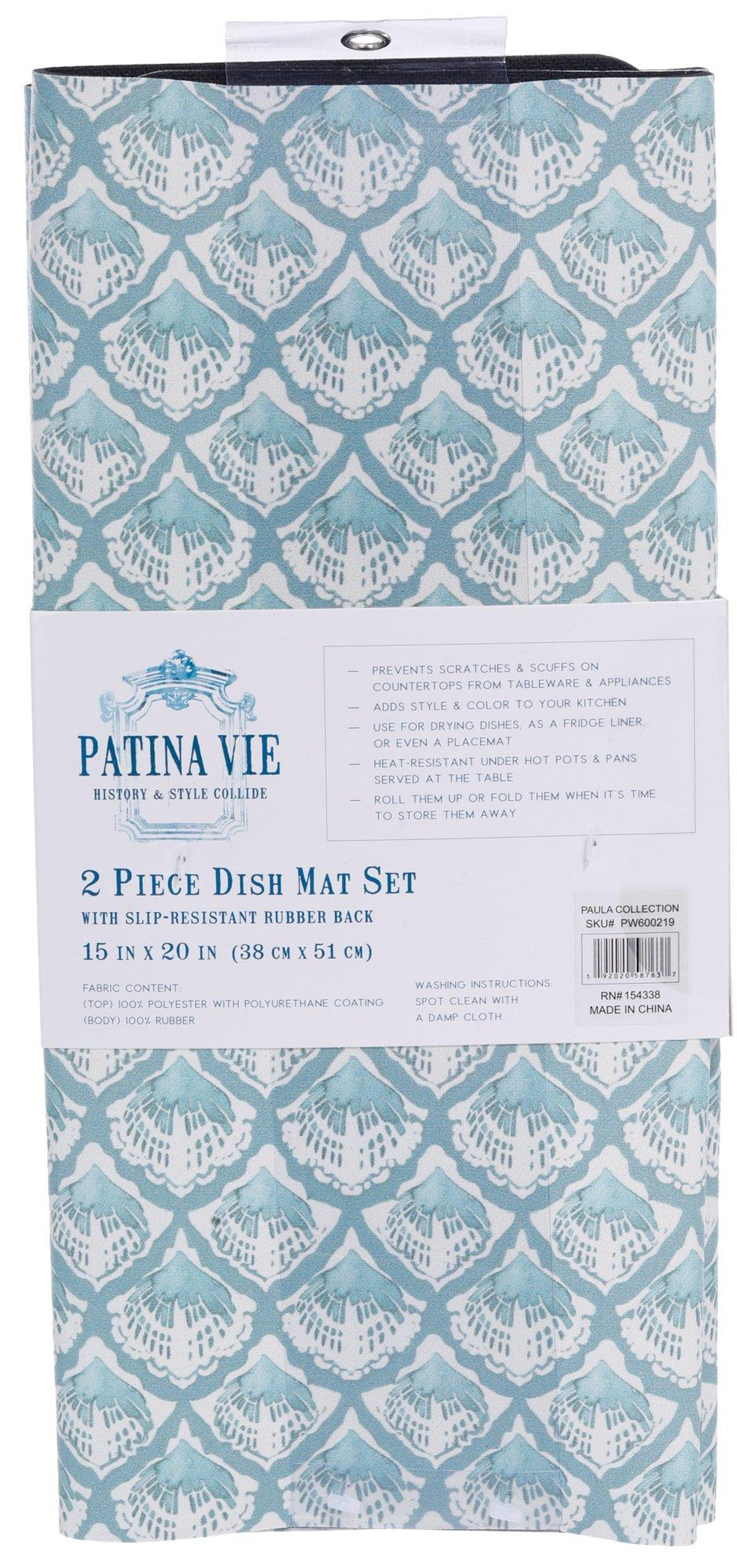 Keep your kitchen dry and tidy with this 2-pack of Blue Scallop Print Dish Mats. Measuring 15×20 inches, each mat features a slip-resistant rubber back, super absorbent material, and ultra-drying performance. Easy to clean and perfect for everyday use.