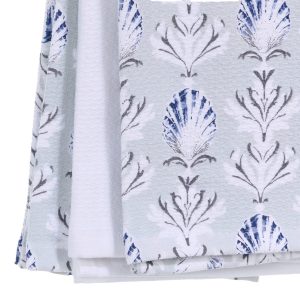 Add a breezy coastal touch to your kitchen with this 3-pack of Seashell Towels. Made from 100% cotton, each 18×28 inch towel features a charming seashell print. Perfect for drying dishes or decorating your space with seaside flair.