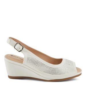 Discover the perfect union of timeless elegance and modern sophistication with our Adriella crystal-embellished slingback wedge sandals. Each stride is a statement of grace and glamour, the front strap generously adorned with glistening crystals shimmering with each step. The wedge heel provides comfortable elevation, allowing you to walk with confidence and ease, ensuring comfort and stability. The slingback design with buckle closure ensures a secure and personalized fit.