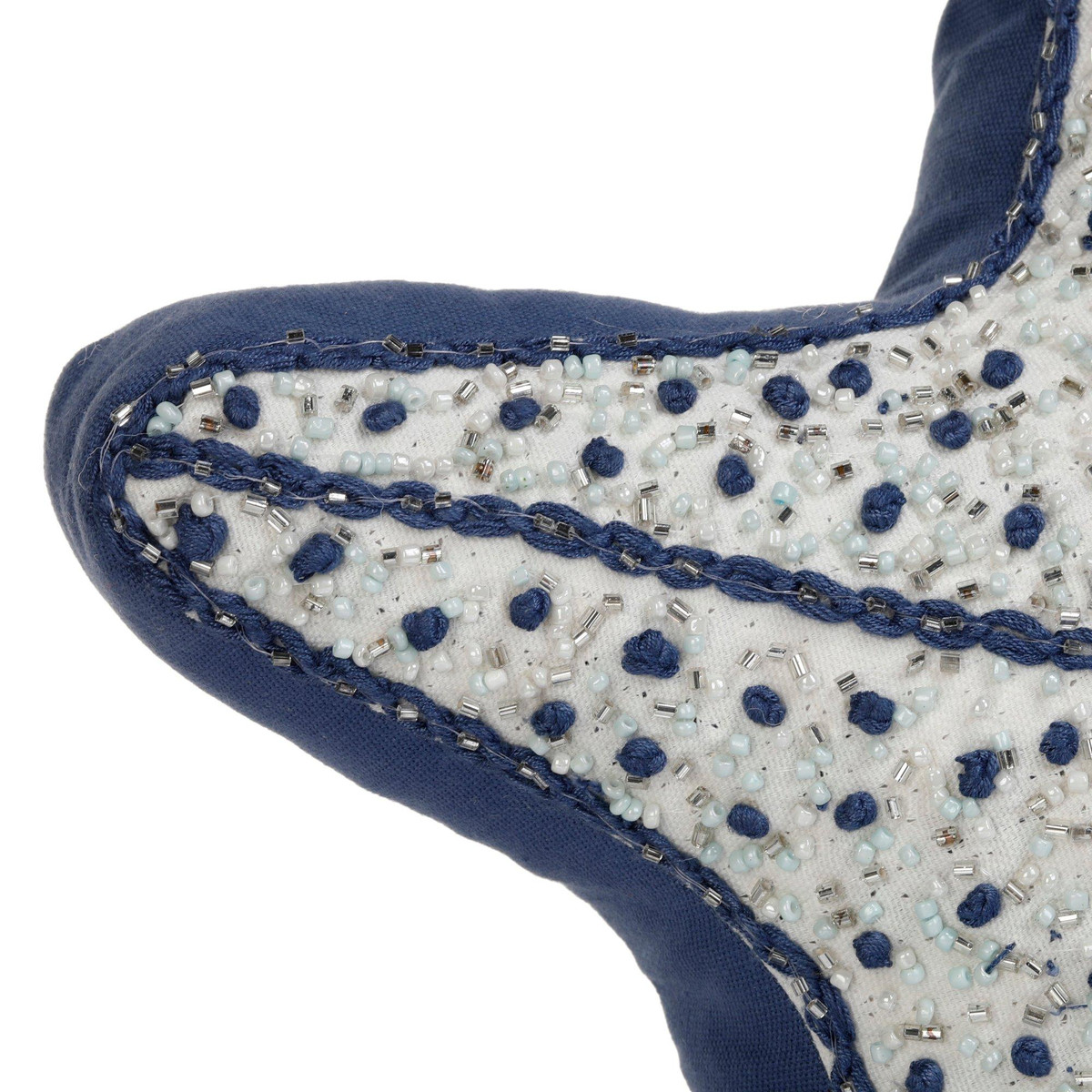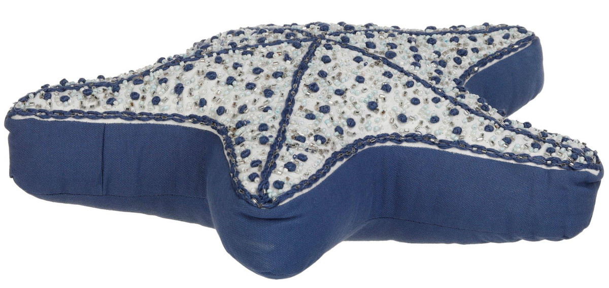 Introducing this exquisite Beaded Starfish Pillow from PD Home! It is made of cotton and polyester, and features a stunning multi-color beaded embellishment. The starfish shape on its own is unique, but the beaded detailing elevates it even more! This pillow is perfect for adding a coastal touch to your home decor. Measures 16 in x 16 in.