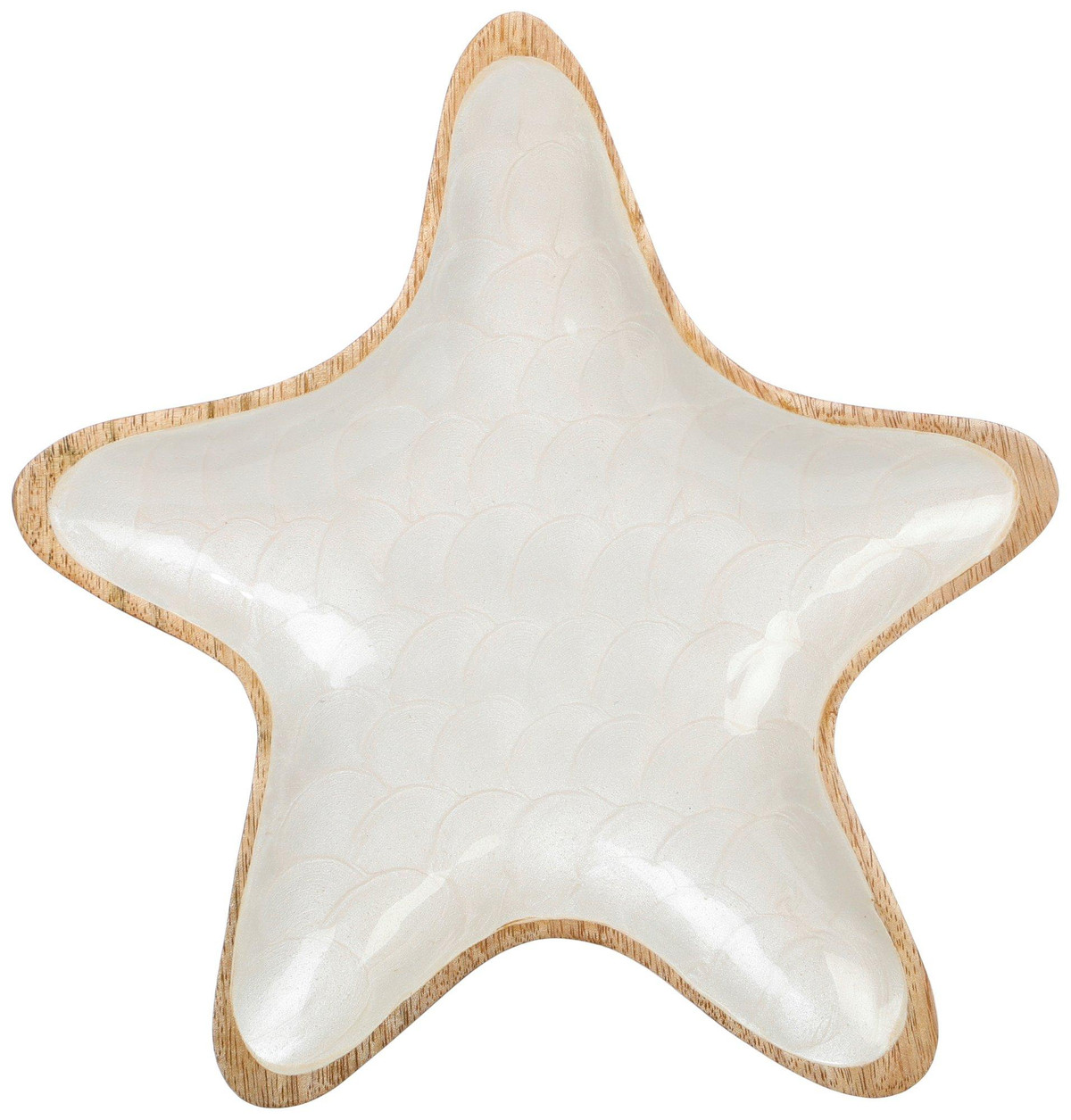 Enhance your dining experience with this stunning Scallop Patterned Wood Starfish Plate. Crafted from high-quality, durable wood, its elegant scalloped design adds a touch of sophistication to any table setting. The starfish shape makes it perfect for serving fish, appetizers, amoung others, as this tray combines functionality with timeless style. Whether you’re hosting a dinner party or enjoying a casual meal, its the perfect accent to elevate your presentation. Measures 10 in x 1 in.