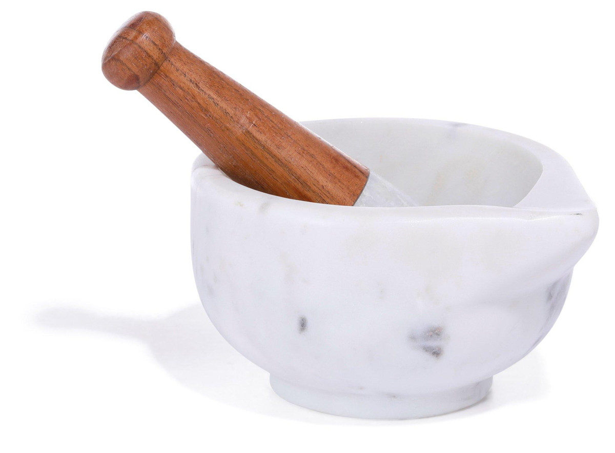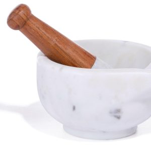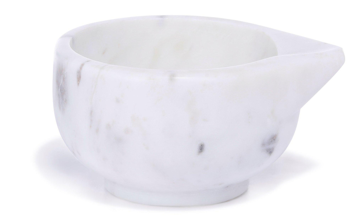 Handcrafted in India, this Marble Mortar and Pestle from Secondary will elevate any kitchen counter. This mortar and pestle set is designed for efficient grinding and pounding of herbs and spices. It’s also the perfect accompaniment for serving freshly made salsa and guacamole at the table.